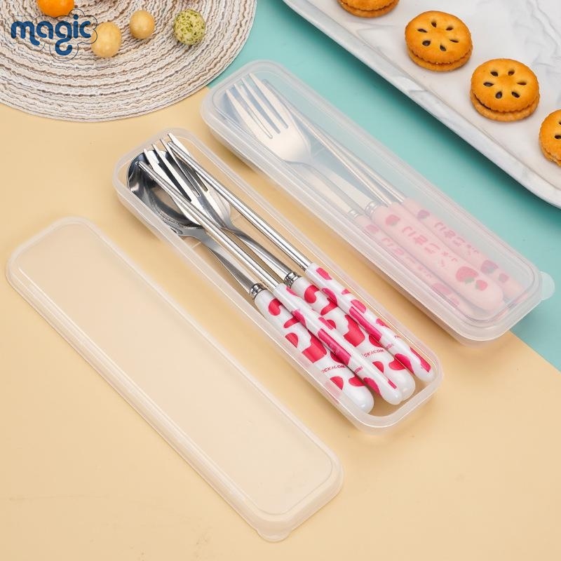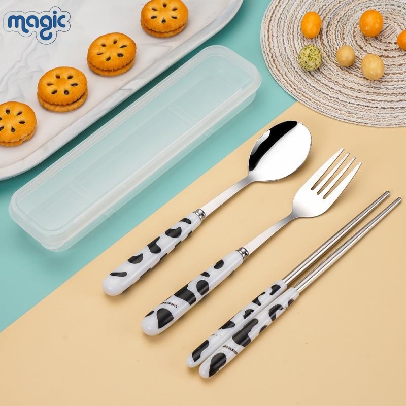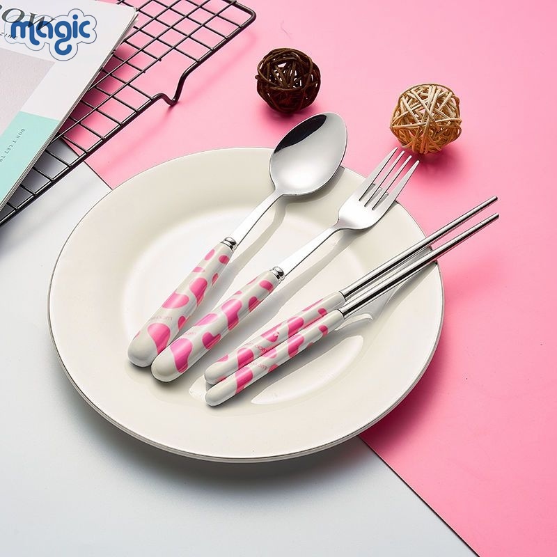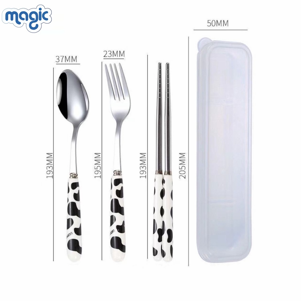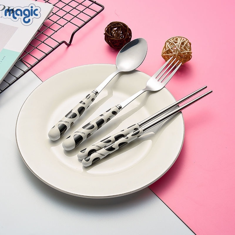 Creative Cartoon Spoon Fork Chopstick Set Stainless Steel Portable Cutlery Set 3in1
