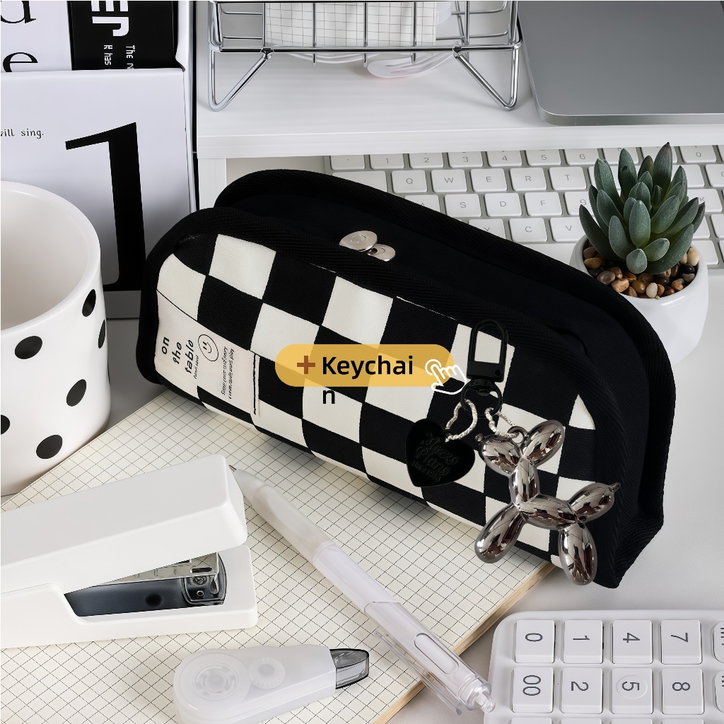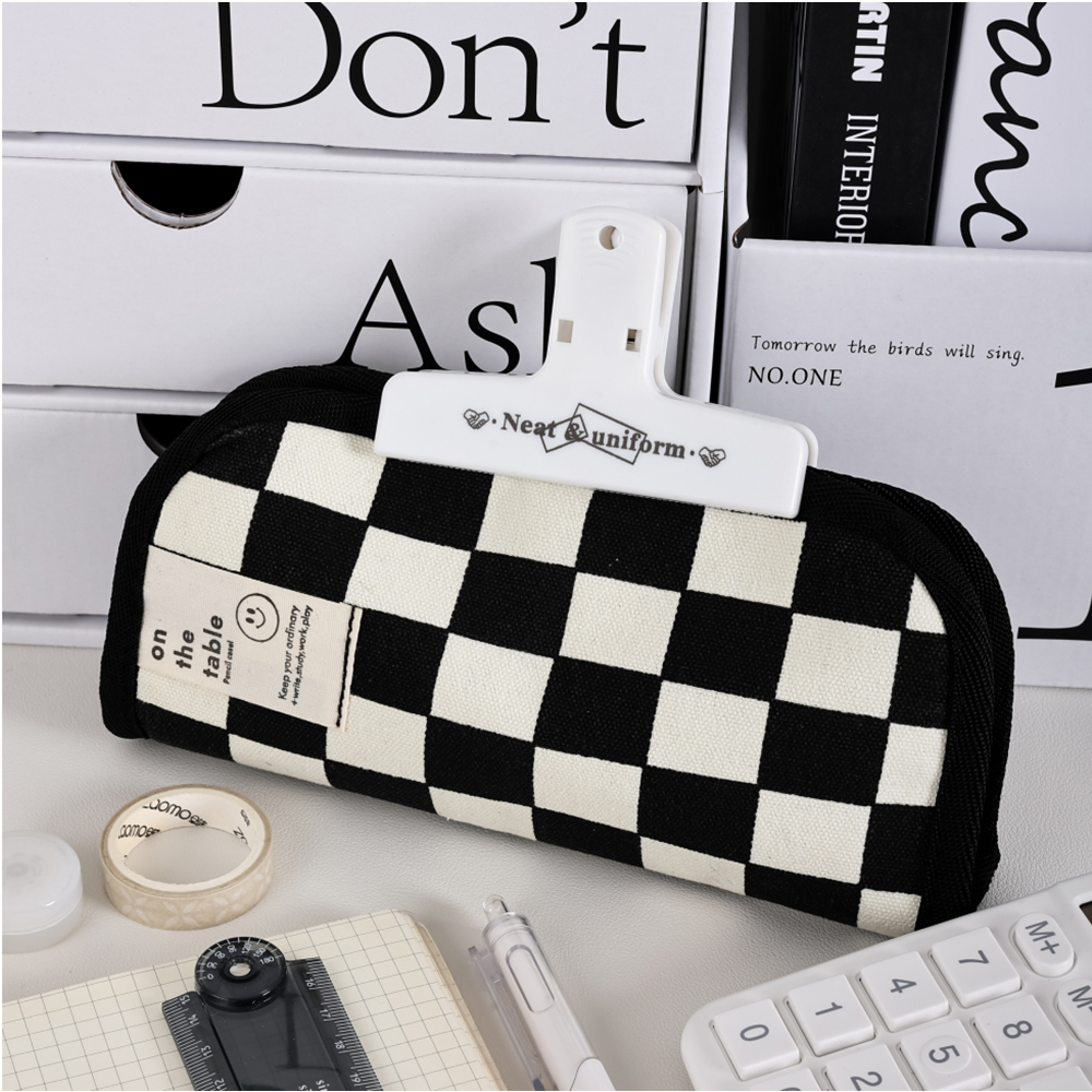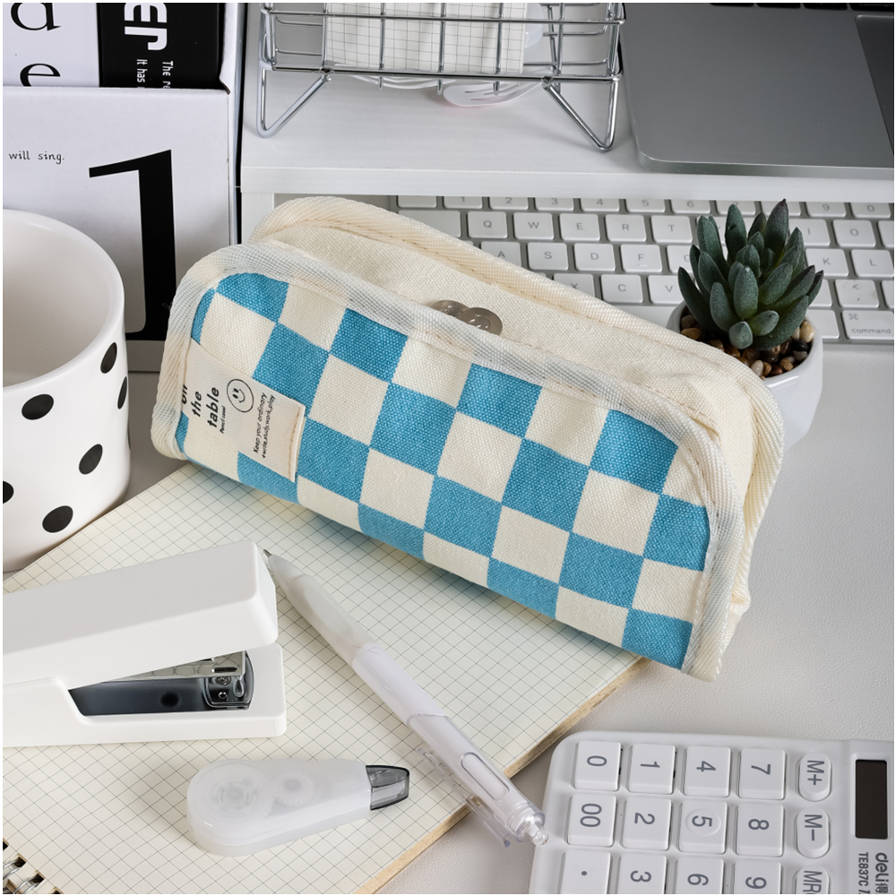 Large Capacity Pencil Case Simple Checkerboard Lattice Pencil Bag Stationery Student Canvas Multifuncional Lapices