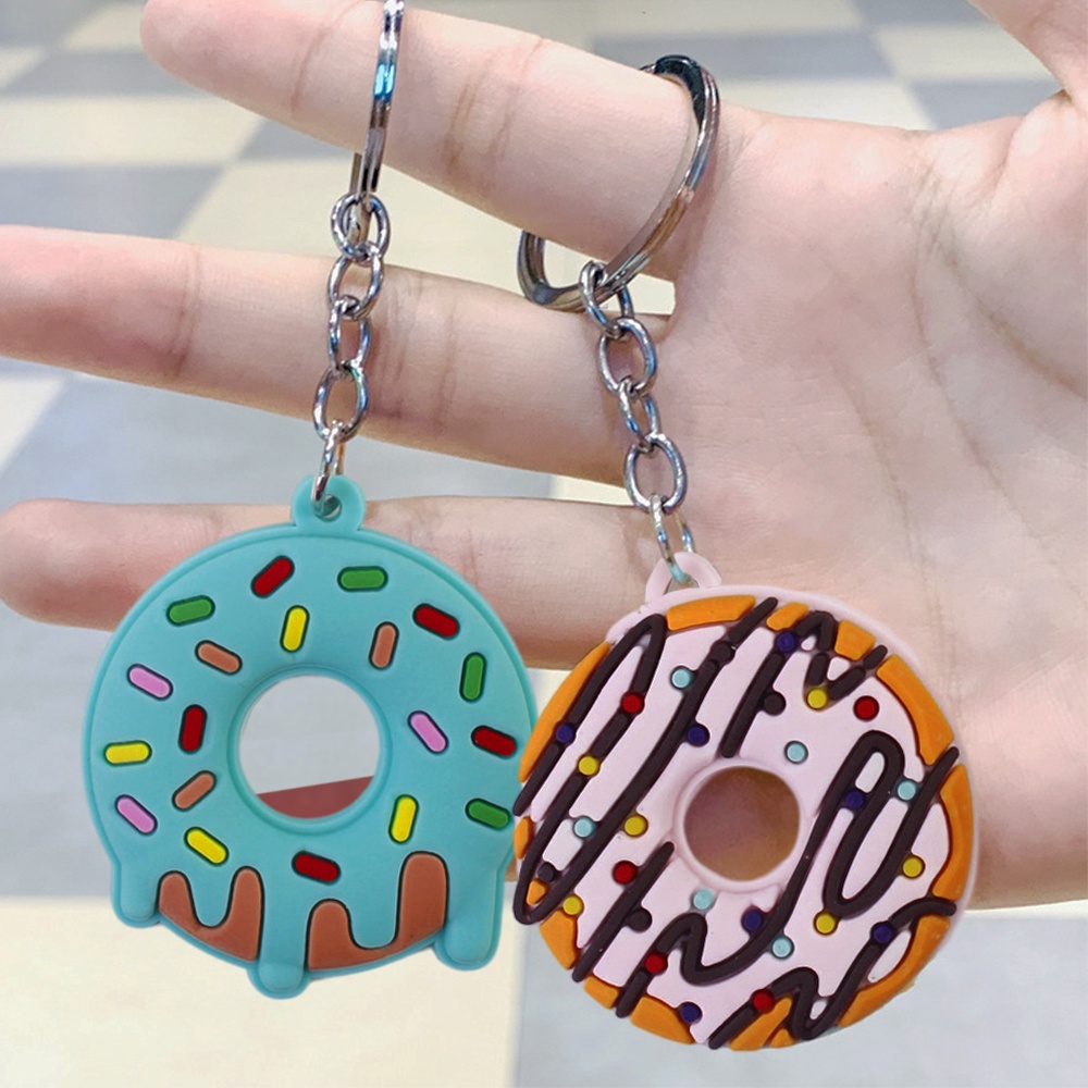 Creative Cute Birthday Cake Keychain Colorful Donut PVC Key Ring for Women Gilrs Car Handbag Phone Case Pendent Birthday Gifts