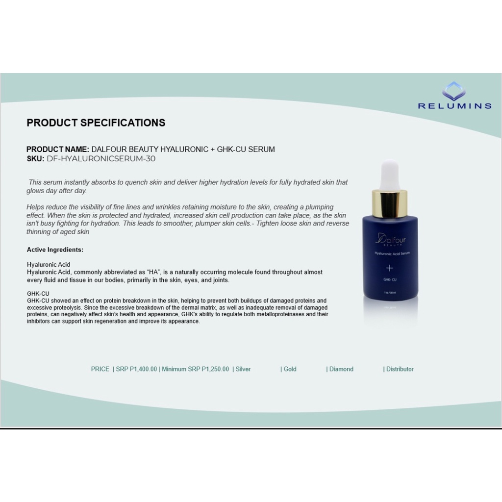Dalfour Beauty Hyaluronic Serum Advanced Skin Hydration with Powerful Skin Firming + GHK-CU 30ml