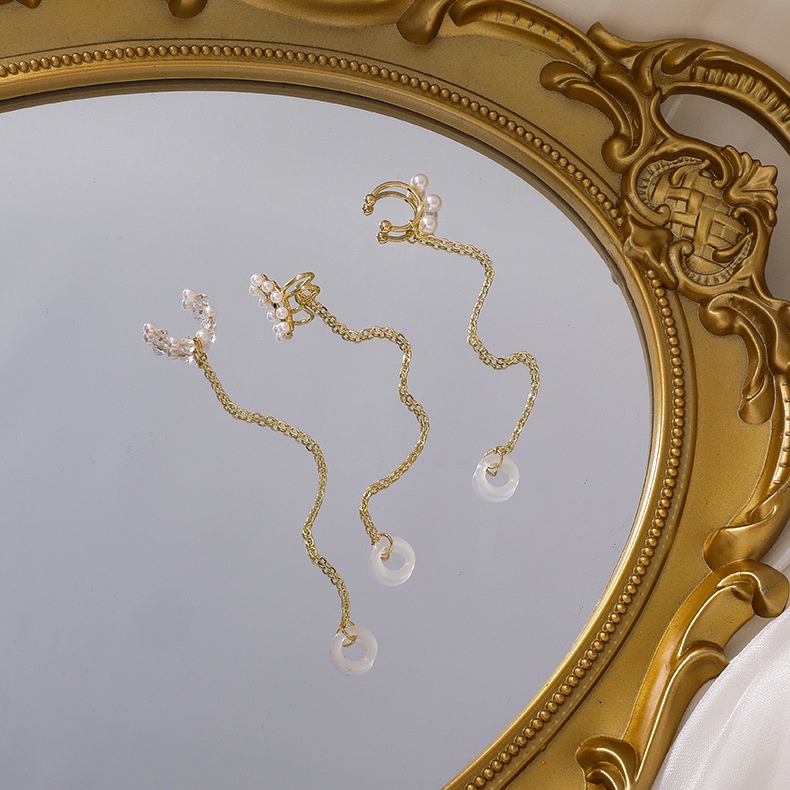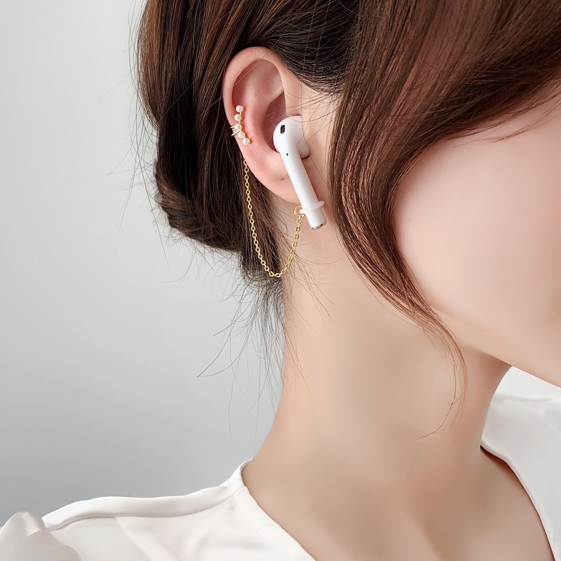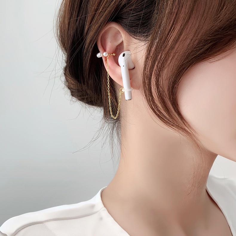 Creative Earphone Anti-Lost Ear Clip Earrings Women's Pearls String Wireless Earbuds Earring Strap Gold Holder Studs for Universal Bluetooth Headset