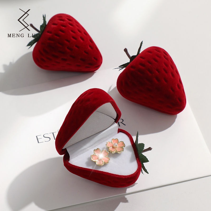 Creative Flocking Ring Box Strawberry-shaped Jewelry Storage Box Earrings Case Best Gifts