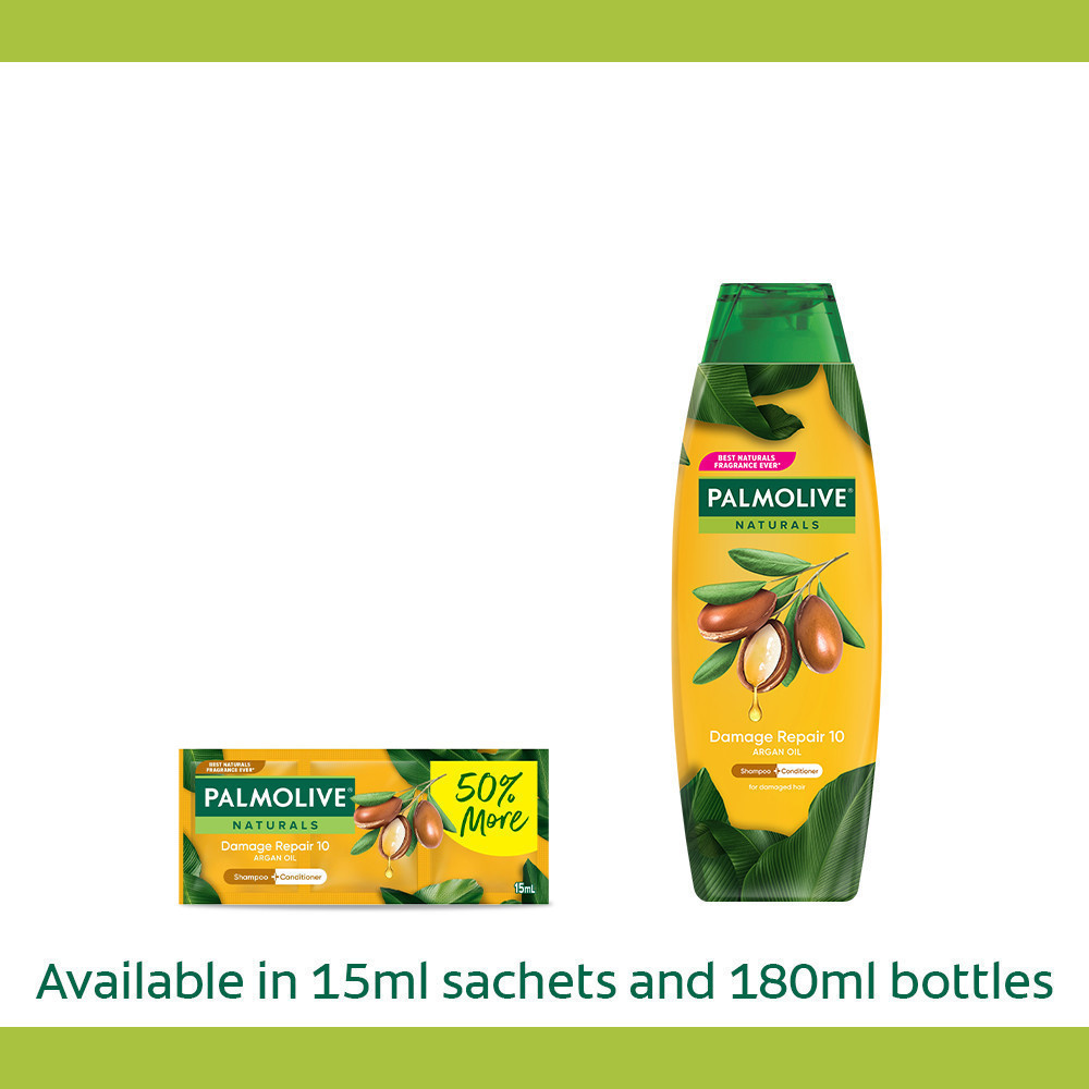 Palmolive Naturals Damage Repair 10 Shampoo - with Argain Oil, for Damaged Hair, 180ml Twin Pack