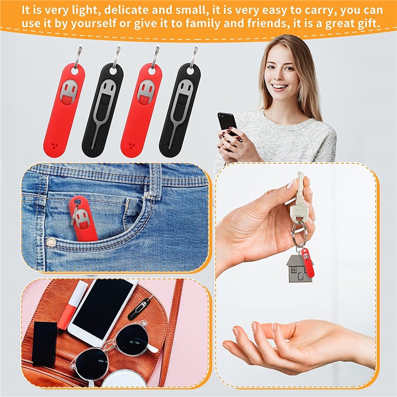 Wholesale Creative Mobile Phone Card Pin Keychain Pendant with Silicone Case/ Cute Smiley Stainless Steel Card-taking Needle/ Universal Phone Tablet Sim Card Eject Tool