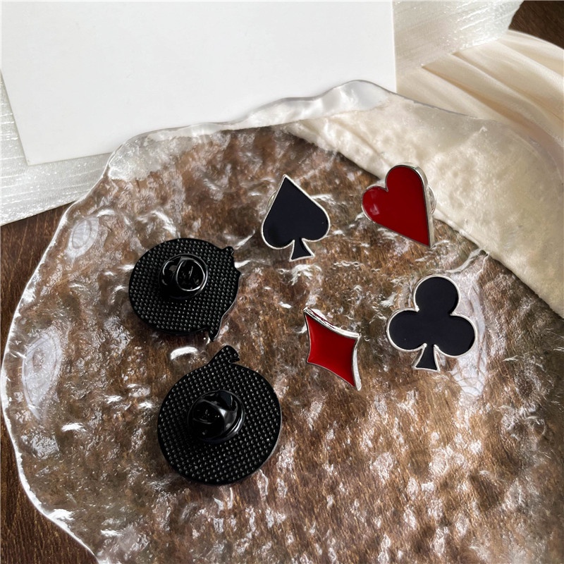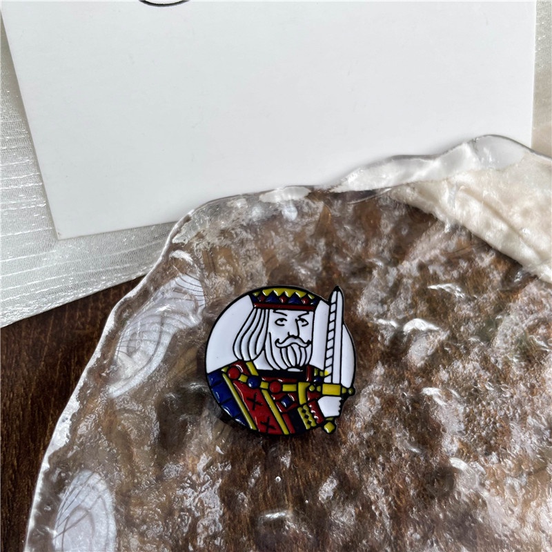 Creative Playing Cards Red Heart Spades Enamel Brooch Cute Cartoon Poker Character King Queen Badge Lapel Pins Female Gifts