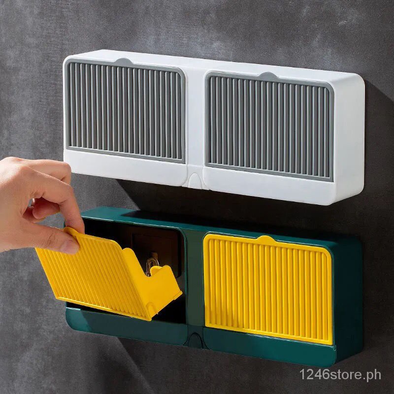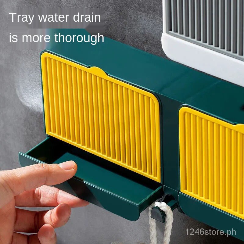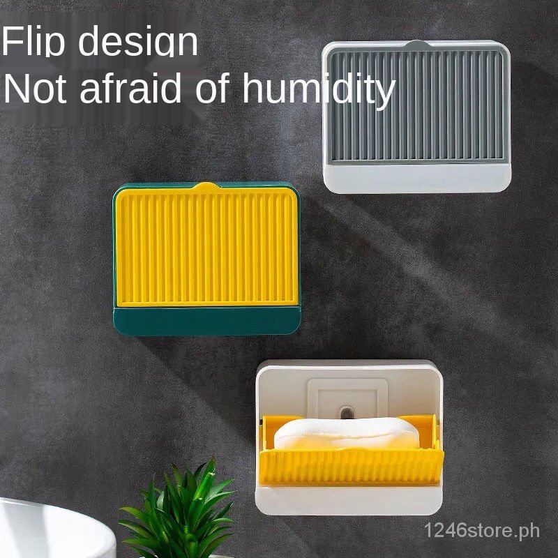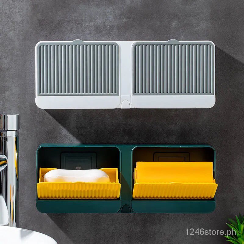 Creative Soap Holder Flip Soap Box Double Grid Drainage Punching Free Flip Soap Box Large Toilet Laundry Soap Box