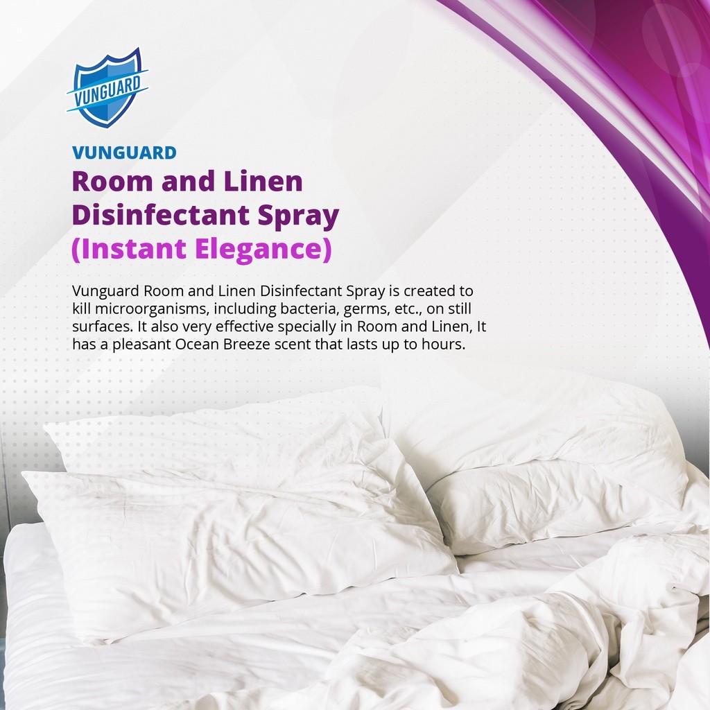 Vunguard.DSLuxurious{H|Room and Linen Disinfectant{F<Spray'q{Instant'n'Elegance,u}Scent