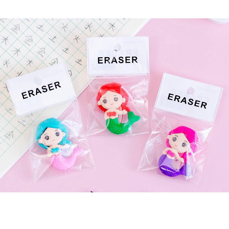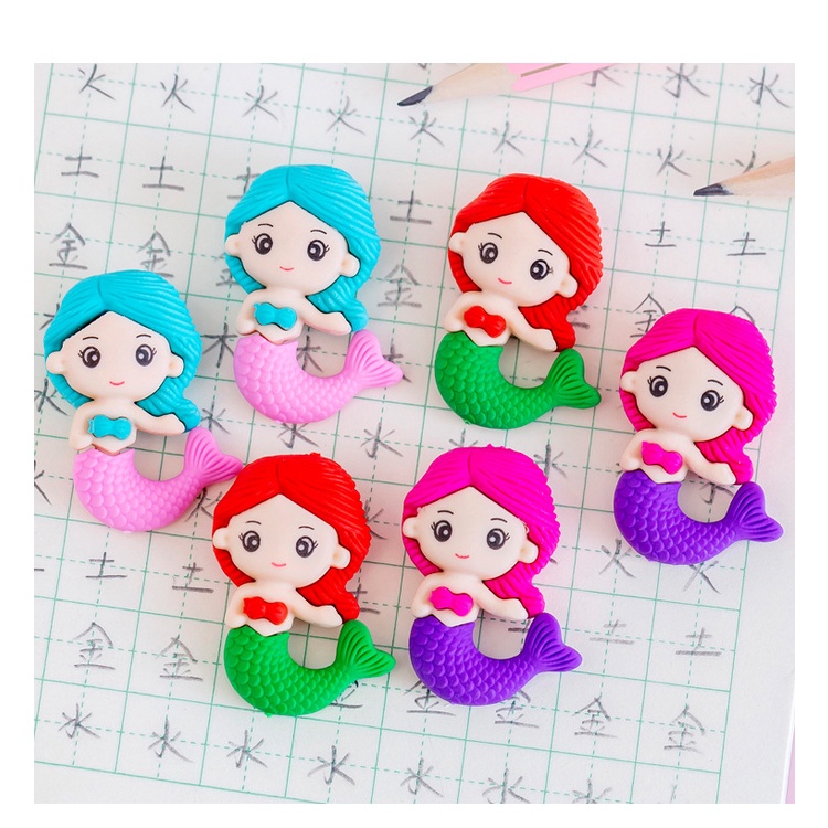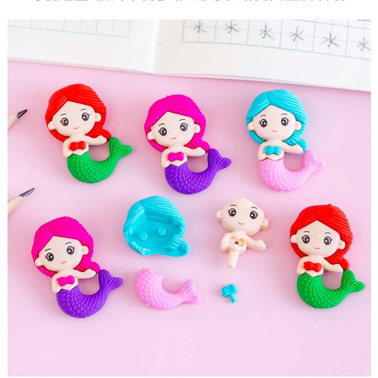 Creative cartoon removable eraser cute mermaid shape eraser children's learning stationery