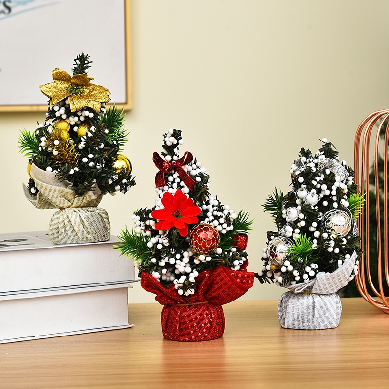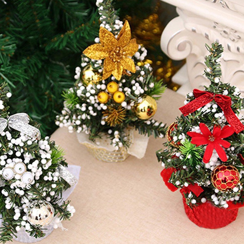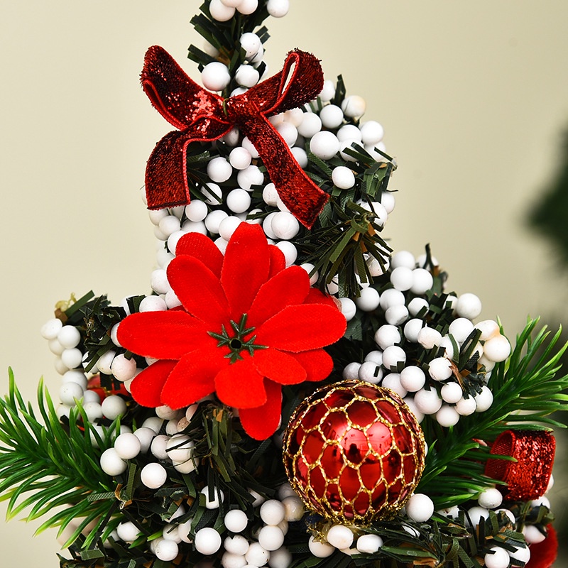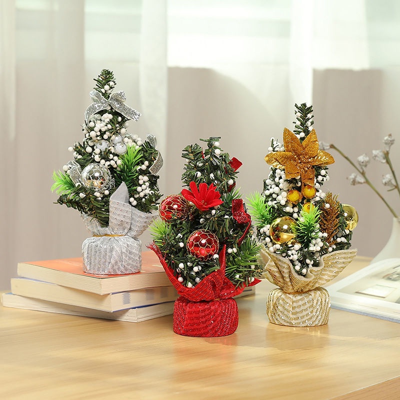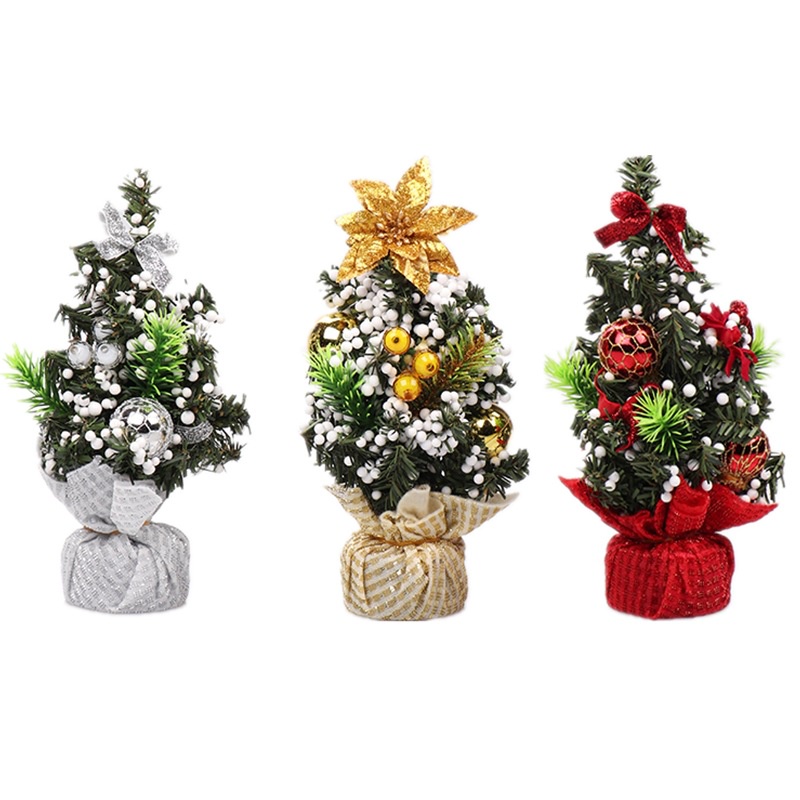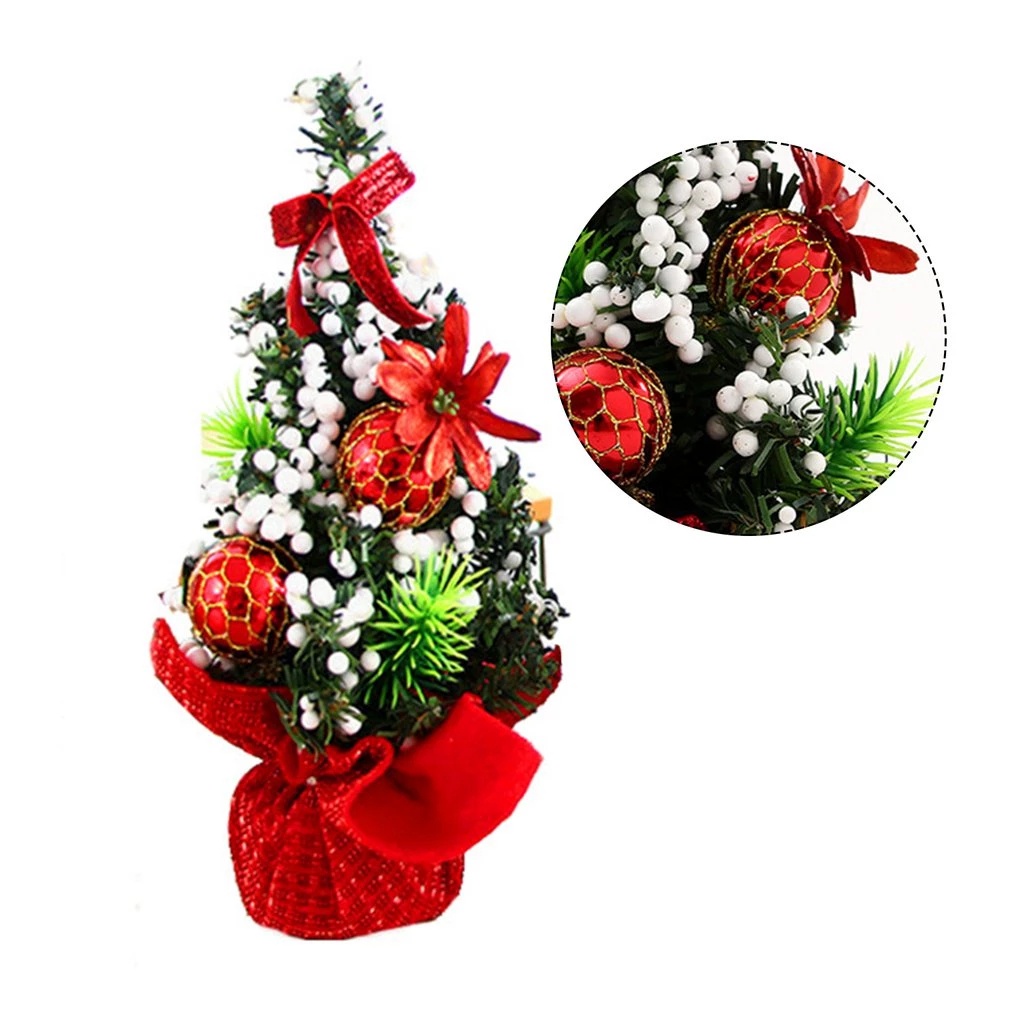 Creativity Mini Tabletop Christmas Tree /Fake Potted Plants With Ribbon Bow And Ball /Home Office Pine Desktop