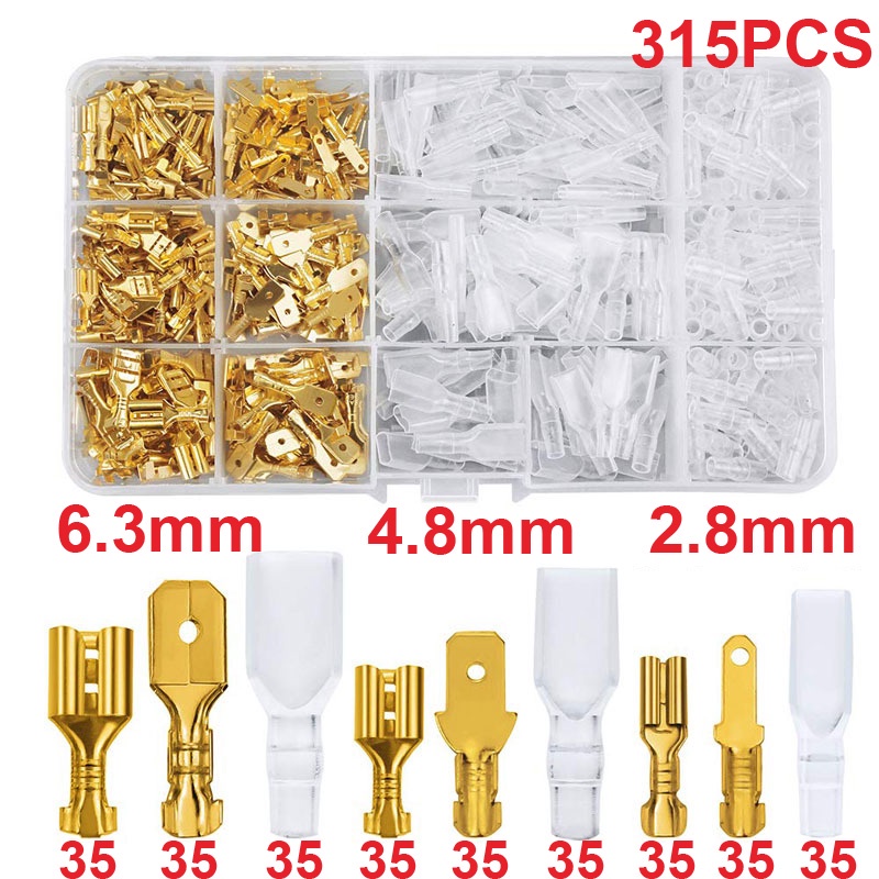 Crimp Terminals Insulated Male 2.8/4.8/6.3mm and Female Connector Electrical Wire Spade Connectors Insulated Sleeves Kit