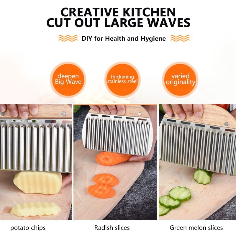 Crinkle Cutter Knife,Stainless Steel Wavy Slicer,Lightweight French Fry Cutter,Potato Crinkle Cutter