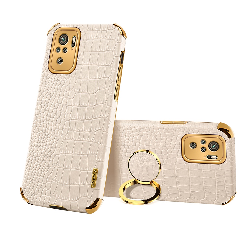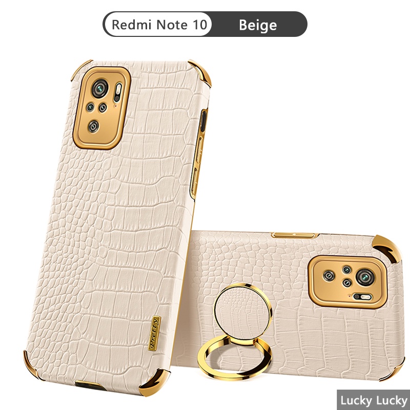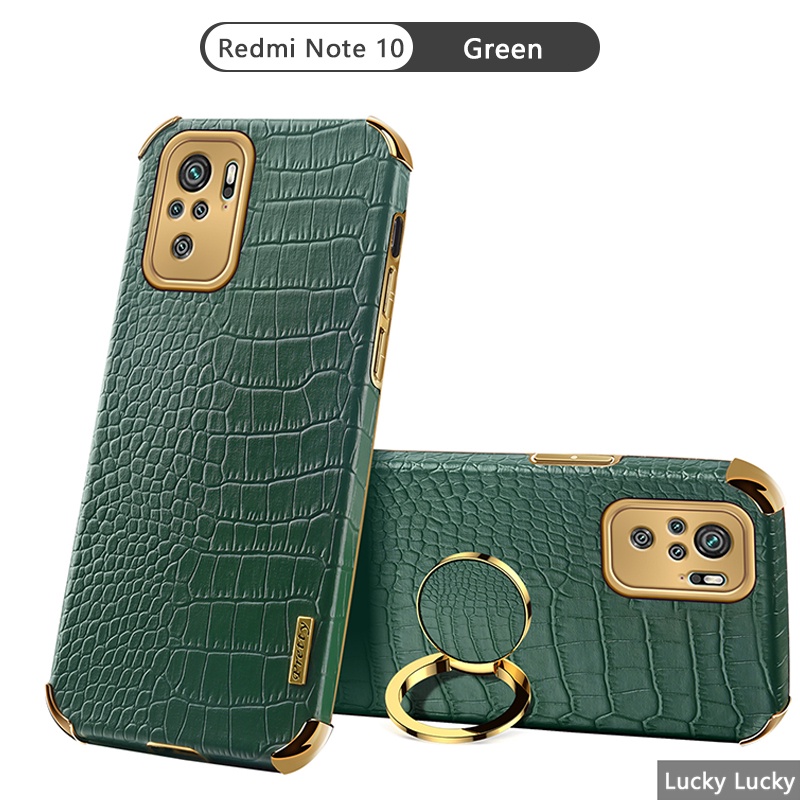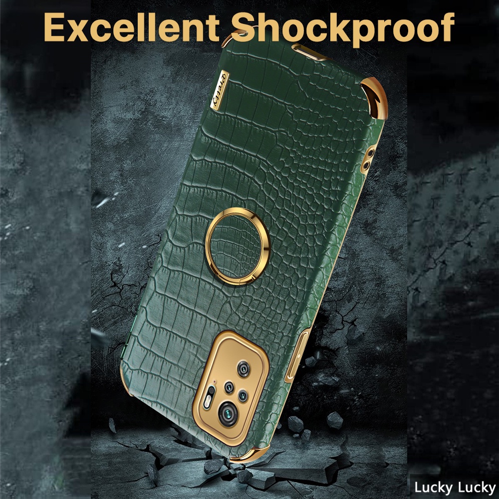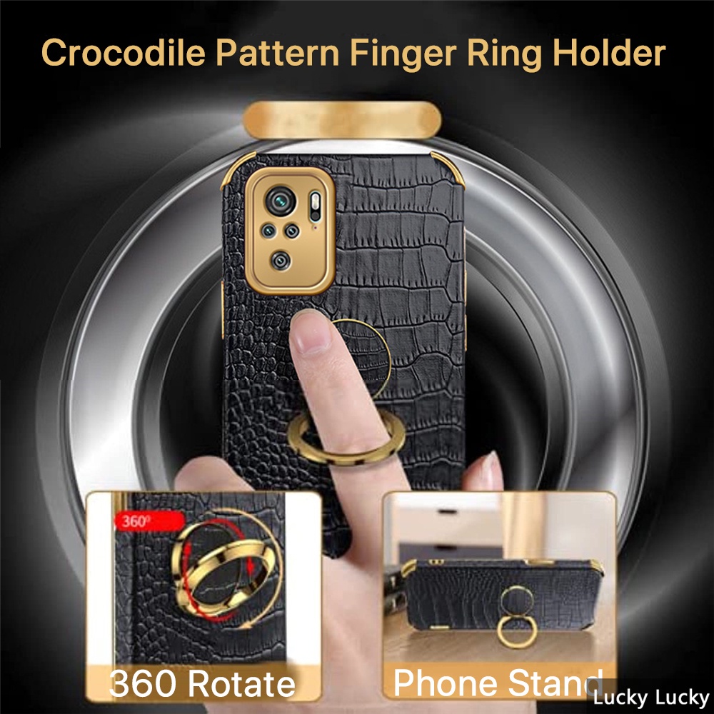 Crocodile Pattern Redmi Note 10 Case 10 Pro 10S 9 Pro 9S 8 Pro PU Leather Finger Ring Stand Holder Full Protect Camera Gold Plating Slim Excellent Feelings Anti Fingerprint