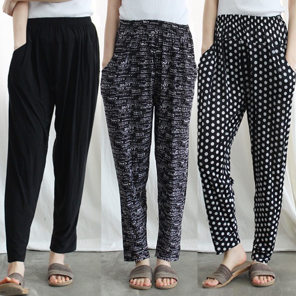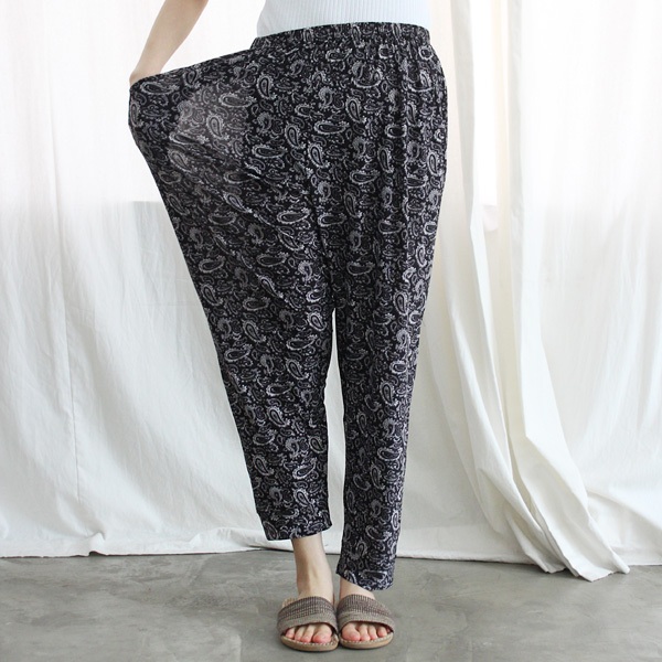 Cropped elastic pants rubber, fat, body-skimming, shirring, mom, home wear free size for women