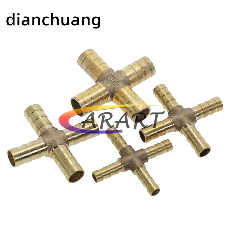 Cross Shaped Brass Pipe Fitting 4 Way 4mm-12mm Hose Barb Connector Joint Copper Barbed Coupler Adapter Coupling Pneumatic