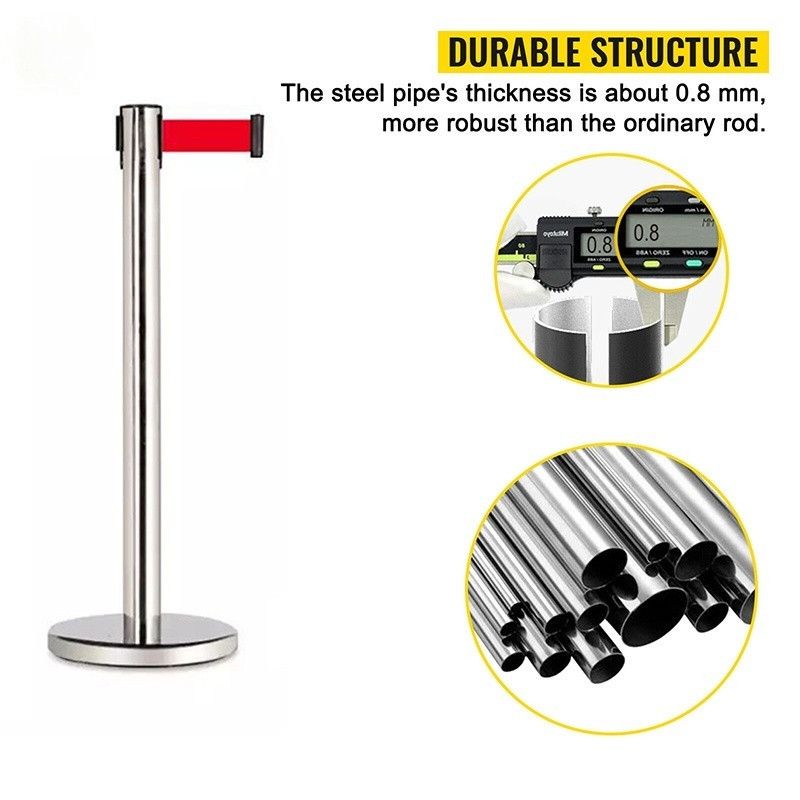 Crowd Control Stanchion,Stainless Steel Safety Barrier Stands,with 2m Red/Blue Retractable Belt