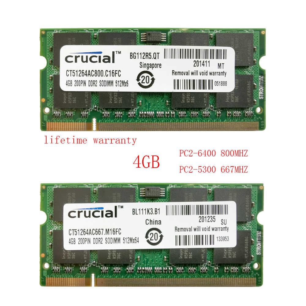 Crucial DDR2 2GB 4GB 8GB Notebook RAM SODIMM PC2-5300 PC2-6400 667MHZ 800MHZ Sodimm Laptop Memory RAM