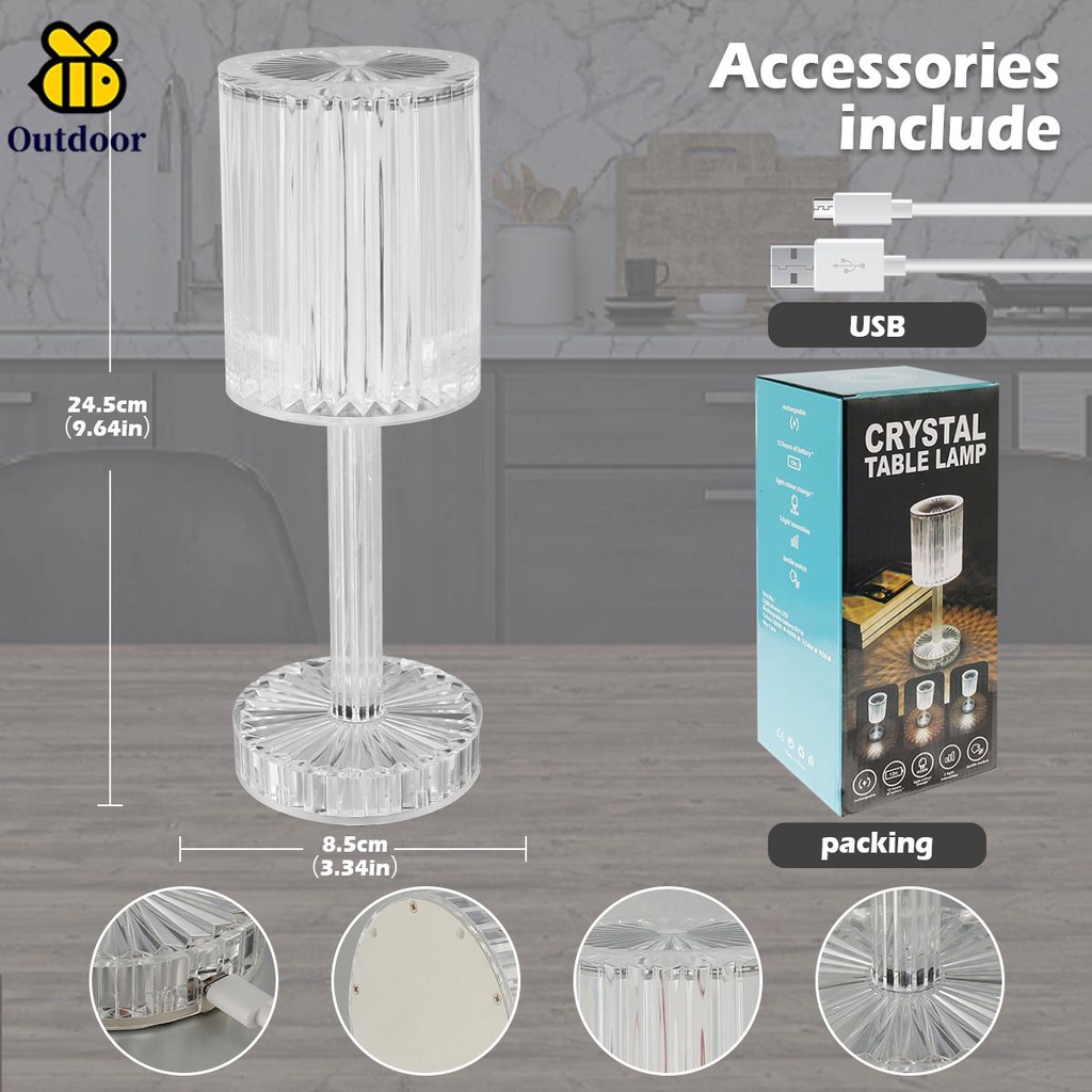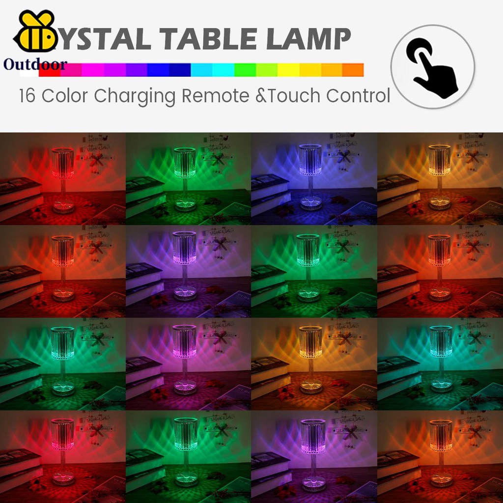 Crystal Bedside Table Lamp Rechargeable RGB LED Night Light with Touch Control 16 Colors ChangingSHOPSKC5588