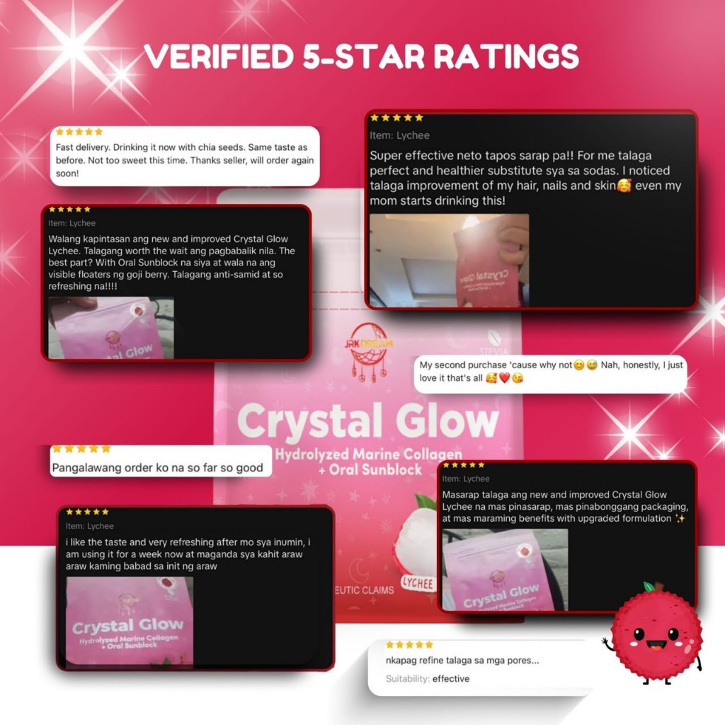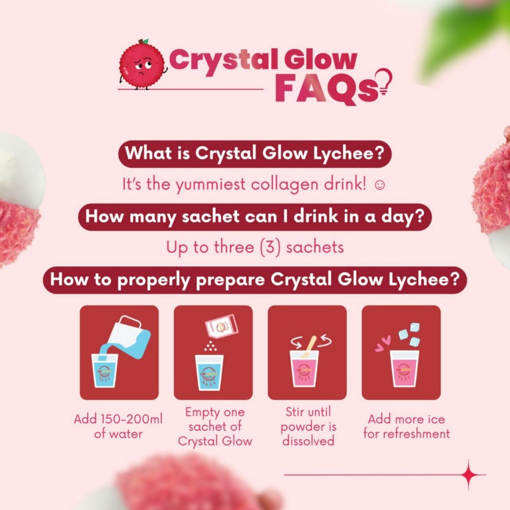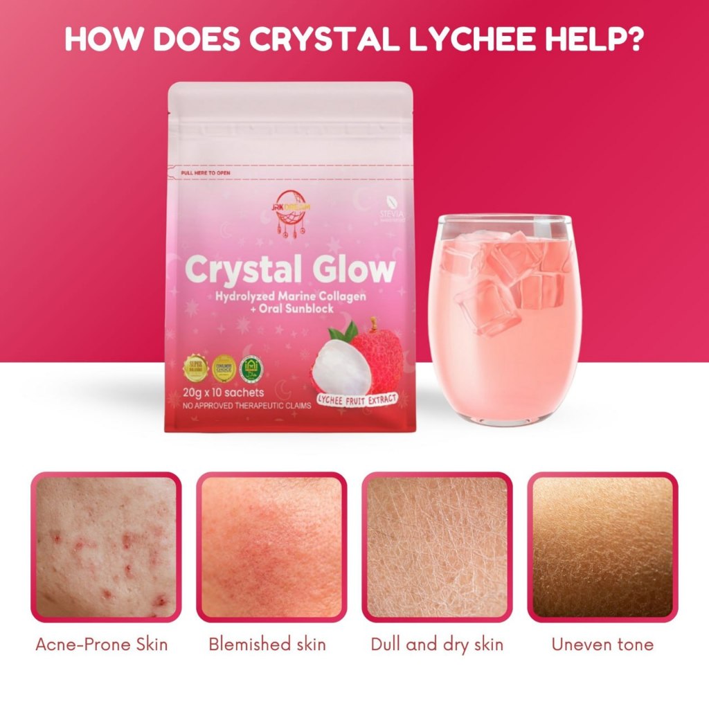 Crystal Glow Lychee Collagen - Hydrates, Brightens & Protects | No Sugar | w/ Oral Sunblock & Vit
