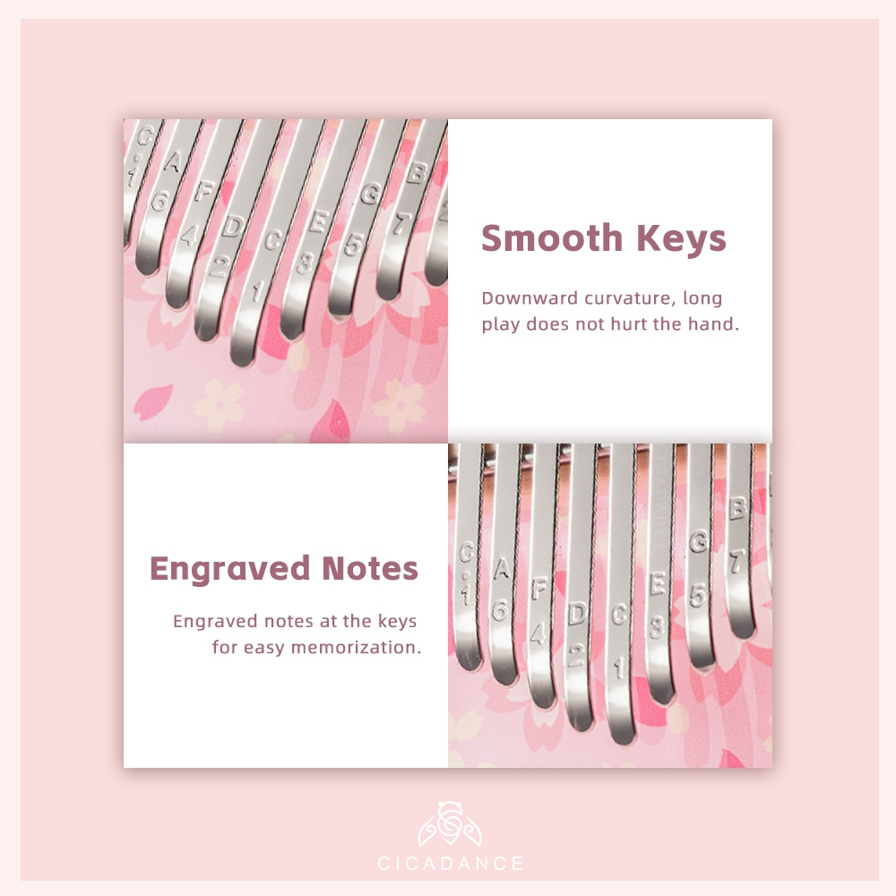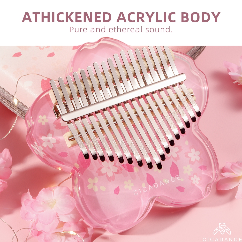 Crystal Kalimba 10/17/21 key Pink Sakura Glass Acylic Calimba Acoustic Finger Piano Thumb Piano Music Instrument Gift For Beginners Clear Keylimba