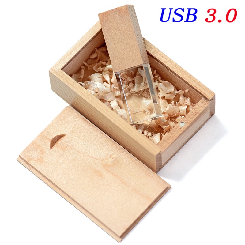 Crystal flash drive usb3.0 wooden box pendrive customized logo 8GB 16GB 32Gb 64Gb super flashdrive