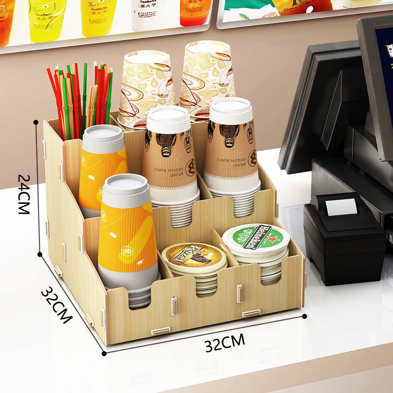 Cup Holder Storage Box Desktop Shelf Bar Counter Milk Tea Take And Divider Multi-function Drawer