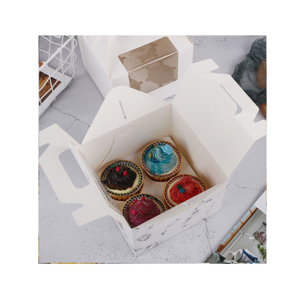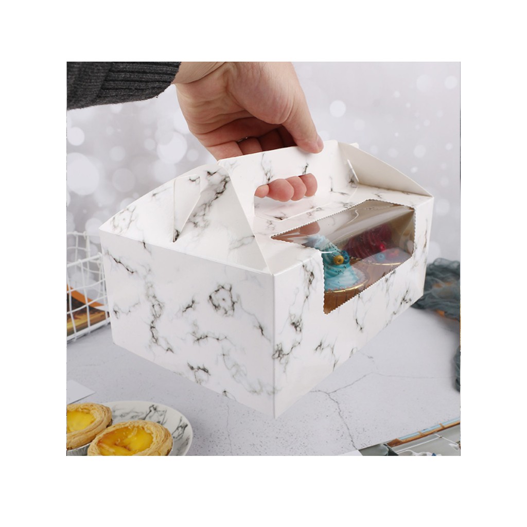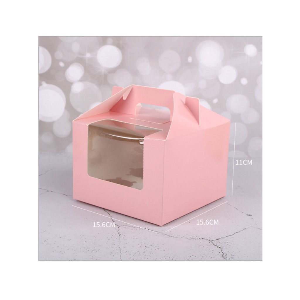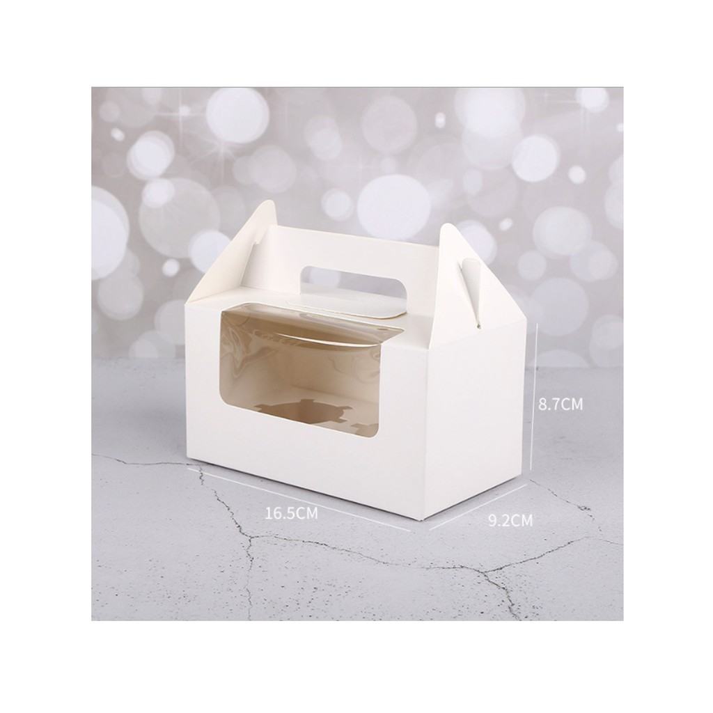 5pcs | Cup cake pastry packaging box transparent window w/ handle and inner liner support