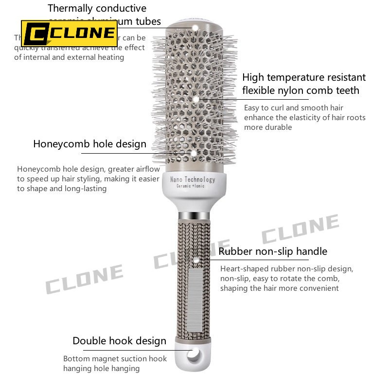 Curly Hair Roller Round Comb Hair Salon Barber Ceramic Aluminum Tube Blower Brush Styling Hairdress