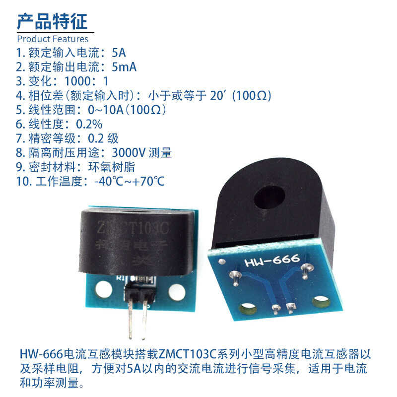 Current transformer module 5A range single-phase AC current sensor module