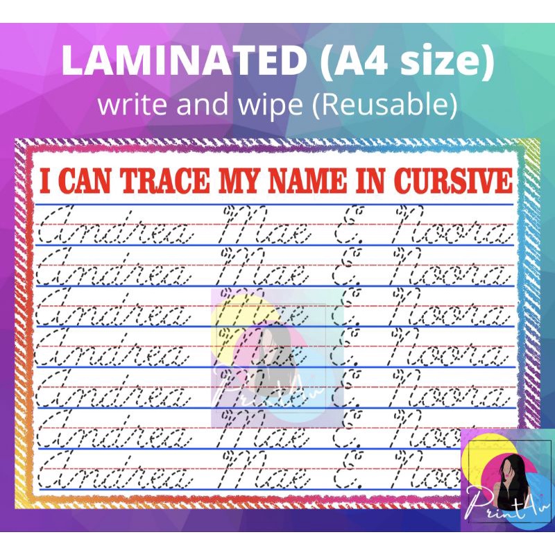 Cursive Tracing name alphabet letters reusable waterproof