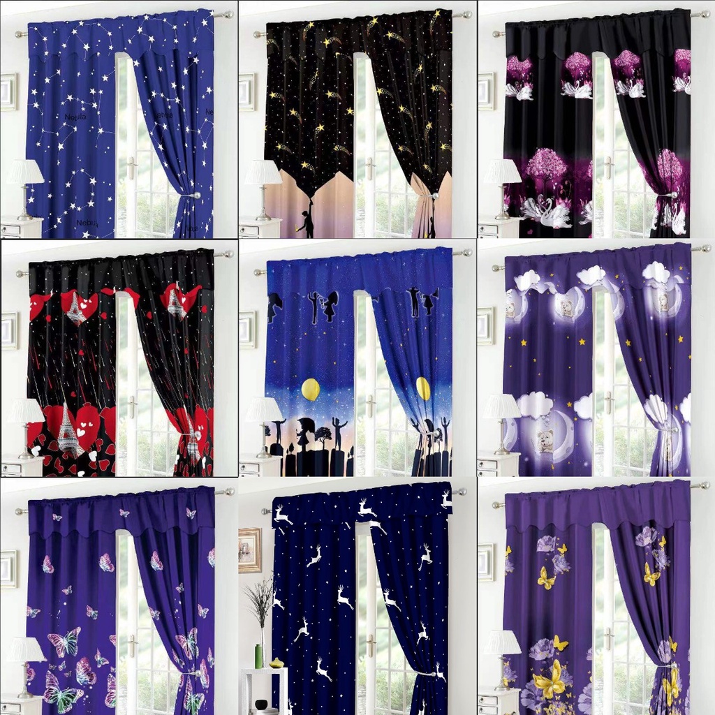 Curtains Dark Pattern Printed Blackout Bedroom Doors and Windows Kurtina No Ring 1pc 130*200cm