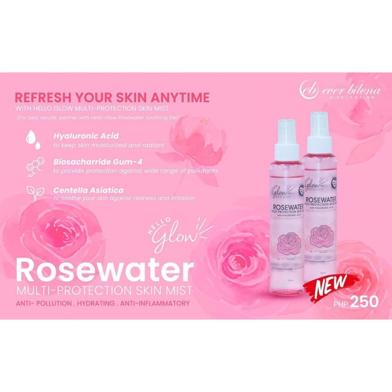 Hello Glow Rosewater Multi Protection Skin Mist 150ml by Ever Bilena