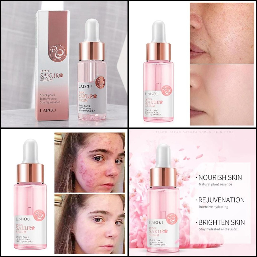 LAIKOU Sakura Serum Essence Shrink Pores Remove Acne Skin Rejuvenation Anti-Aging Moisturizing Nouri