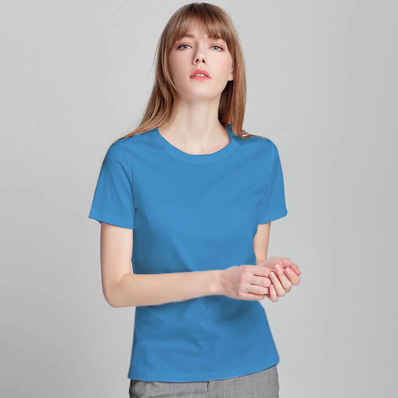 Crew neck sky blue unisex shirt short sleeve pure color t shirt sport outdoor clothing for women men