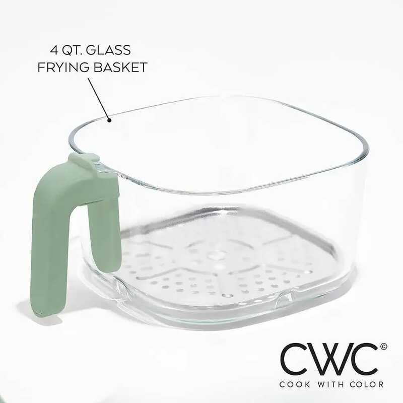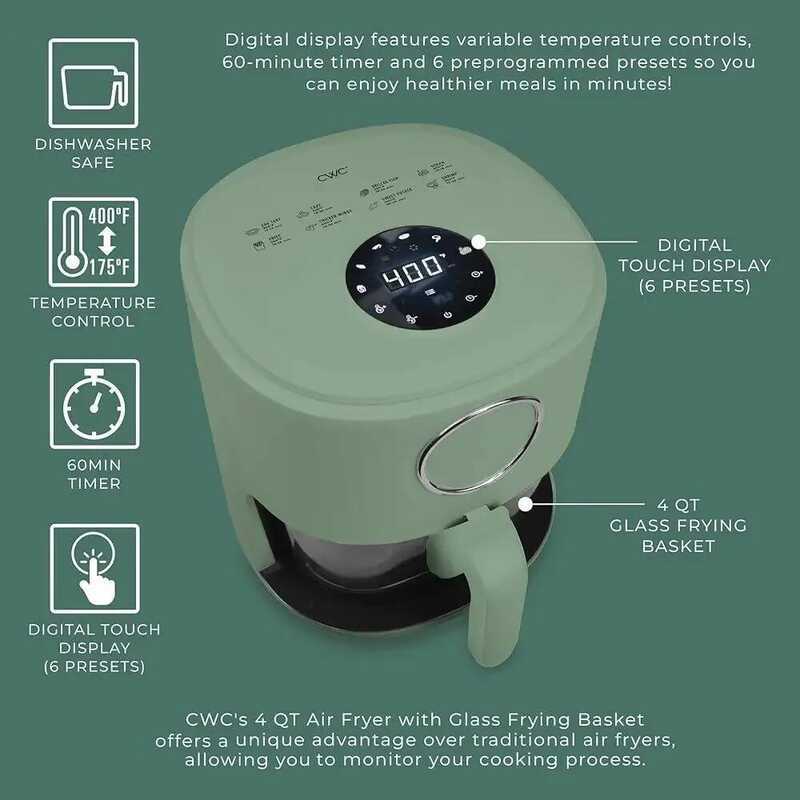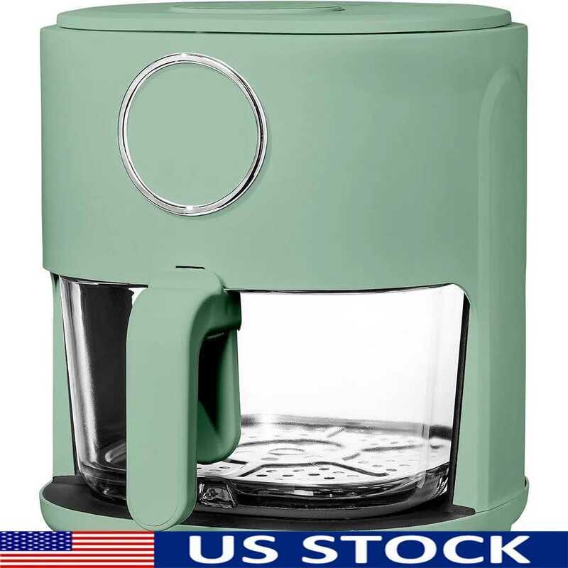 Air 1200W Fryer 4Qt Digital Display Glass Basket Dishwasher Safe 6 Cooking Presets Timer Adjustable