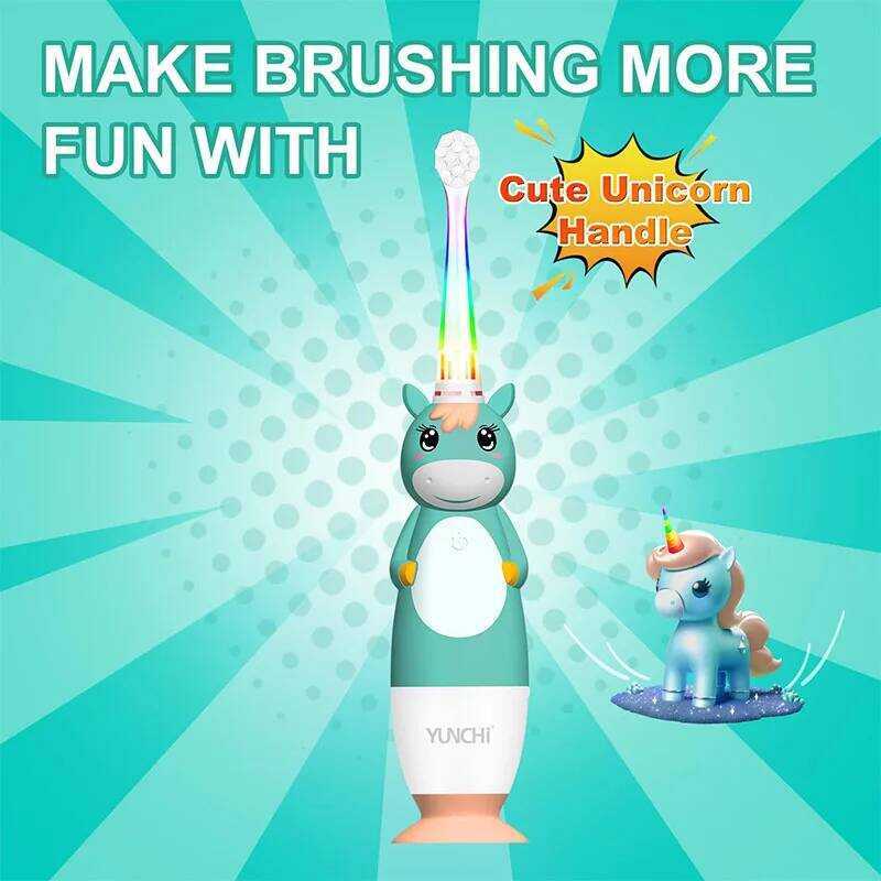 Kids Sonic Electric Toothbrush with Cute Unicorn Cover Soft Microfiber Bristles 4 Brush Heads Smart