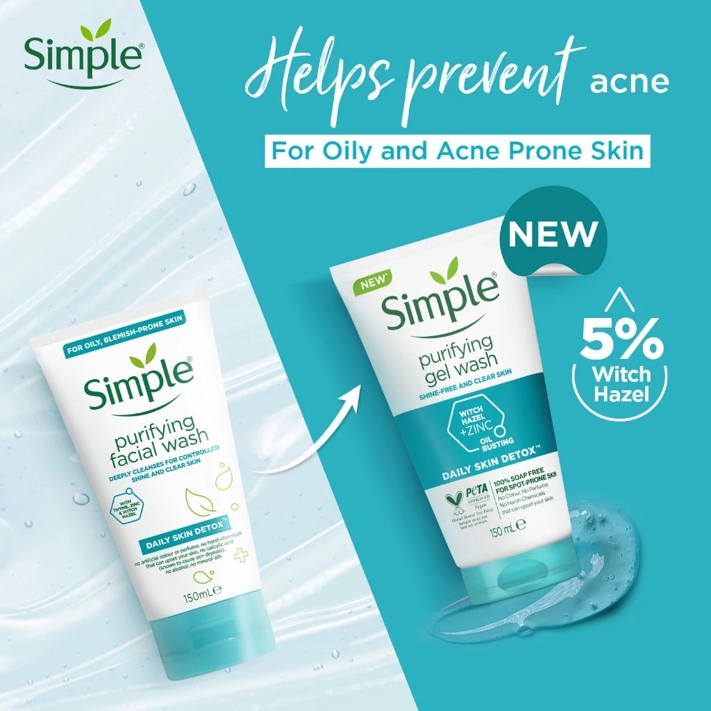 Simple Daily Skin Detox Purifying Facial Wash Cleanser For Oily Prone Acne Skin Type