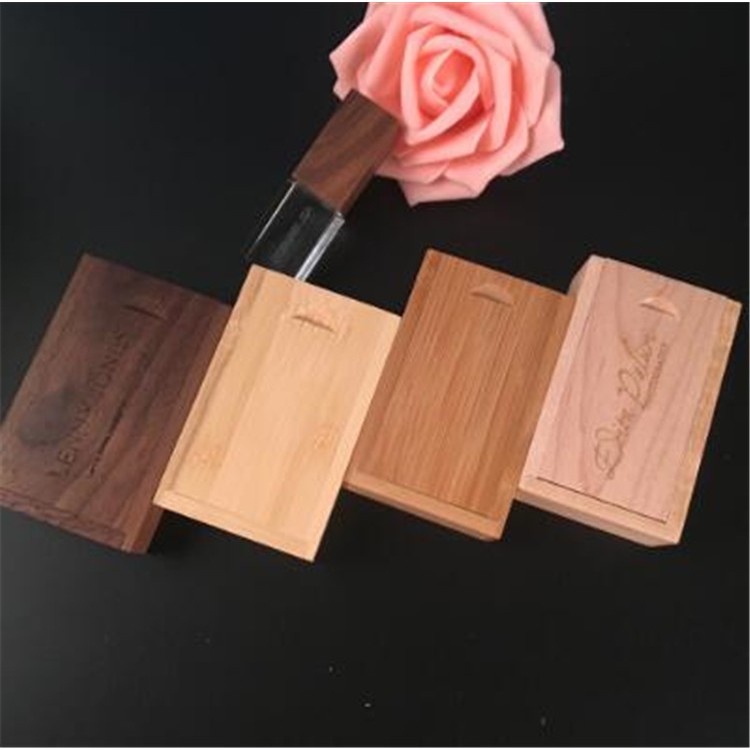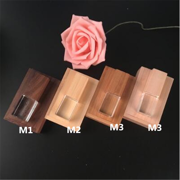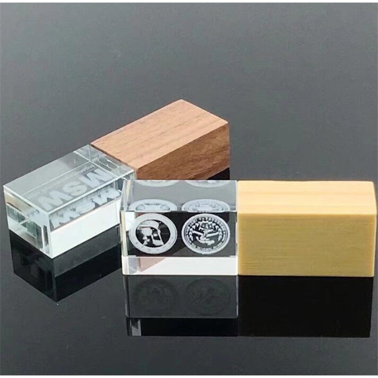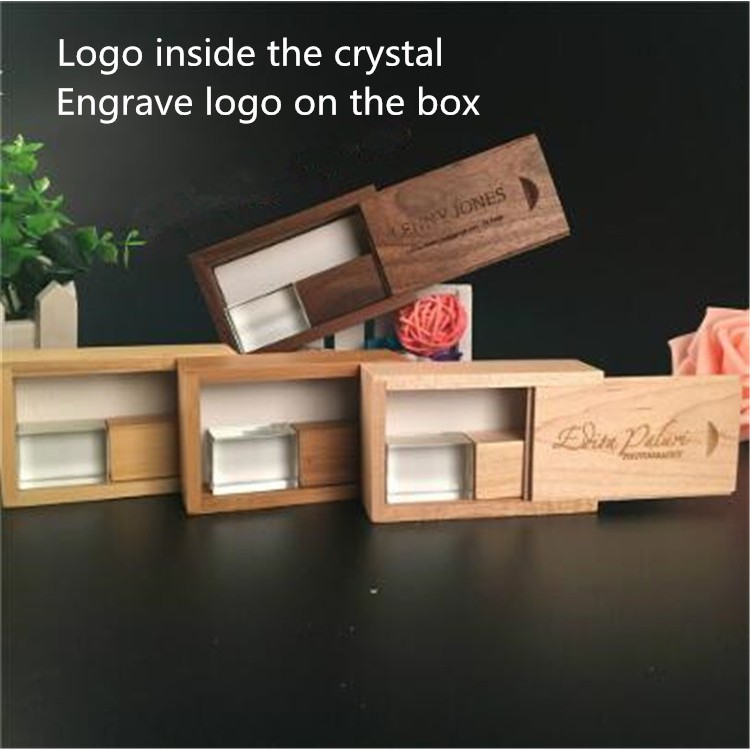 Custom 3D Logo Glass Crystal Natural Wood USB Flash Drive + Box