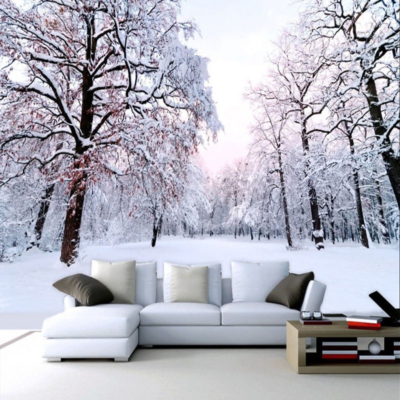 Custom 3D Mural Wallpaper Beautiful Winter Snow Landscape Wall Painting Living Room TV Backdrop Wall