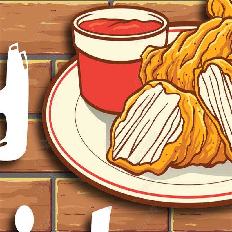 Custom Brick Wall Fried Chicken Snack Bar Wall Paper Fast Food Restaurant Industrial Decor Mural Self-adhesive Wallpaper