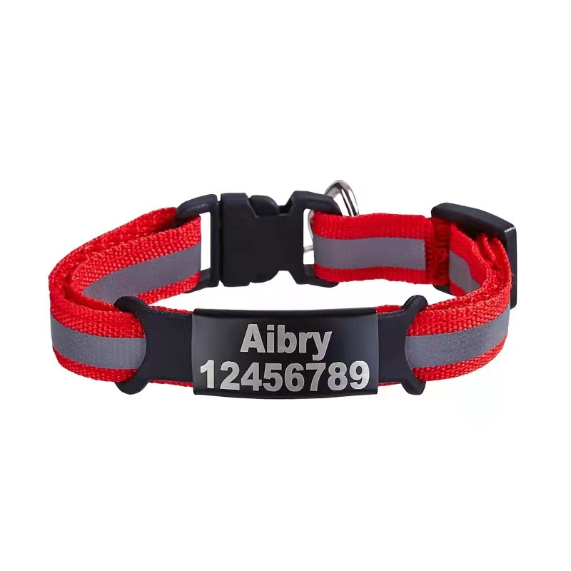 Custom ID Tag Cat collar Bell Necklace Safety Reflective Nylon Cat collar Personalized Nameplate