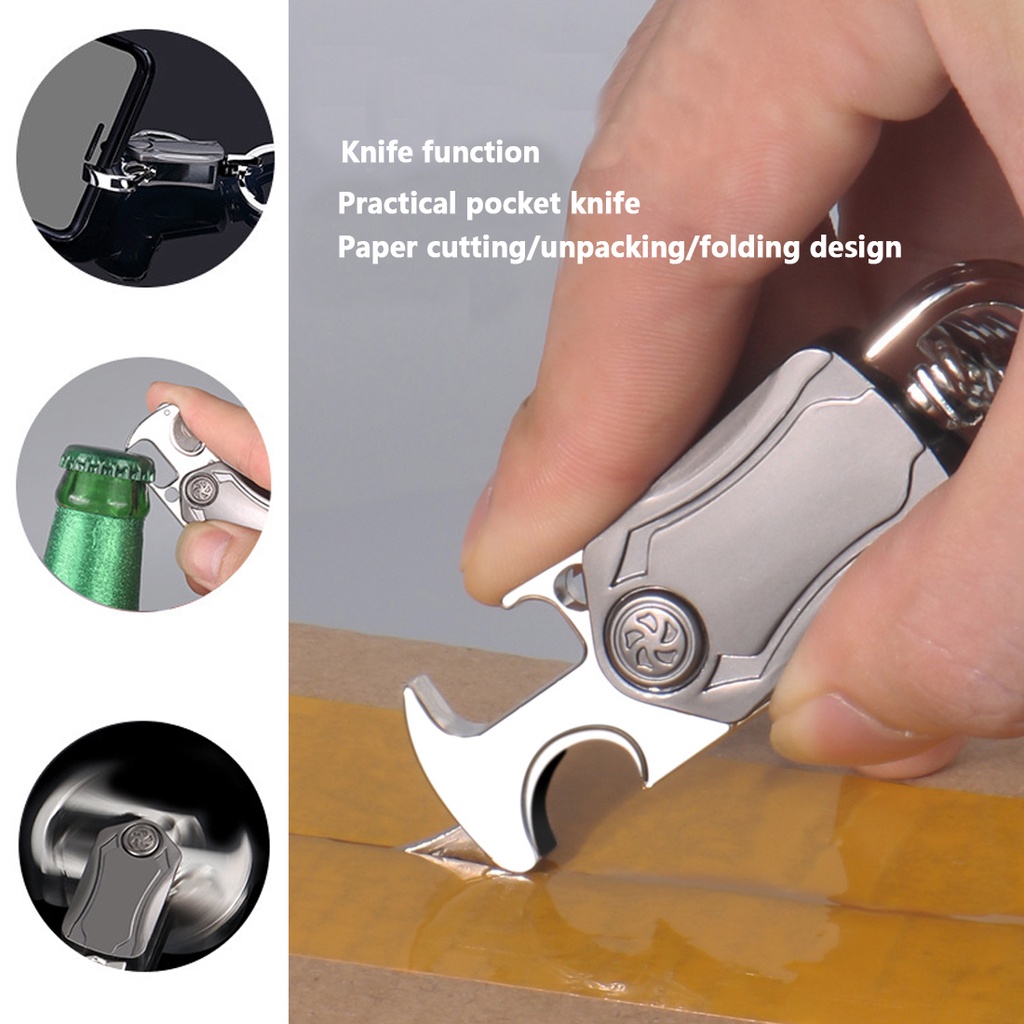 Custom Lettering Keychains 4-in-1 Heavy Duty Key Chain Anti-Anxiety Rotatable Keyring Box Cutter Phone Holer Bottle Opener Keychain