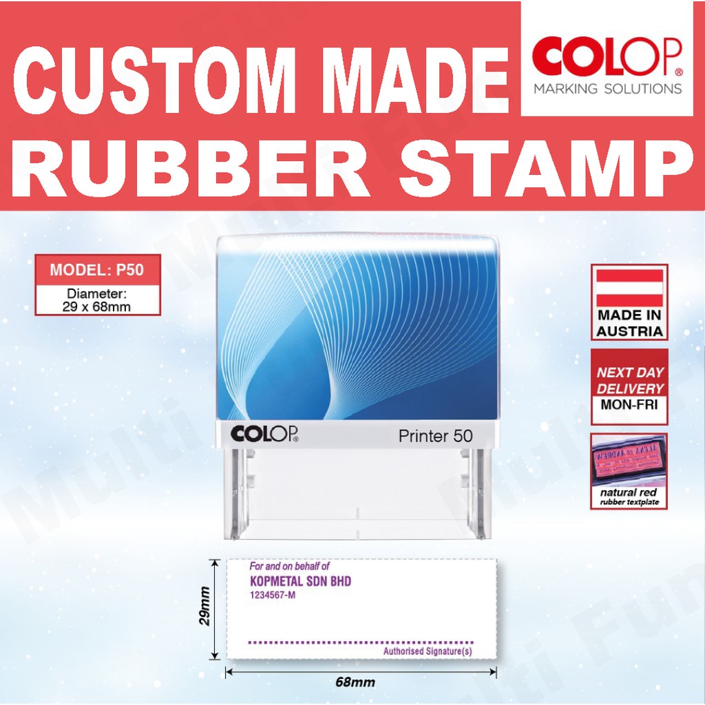 Custom Made COLOP Printer Line Self Inking Stamp Model P10 to P60