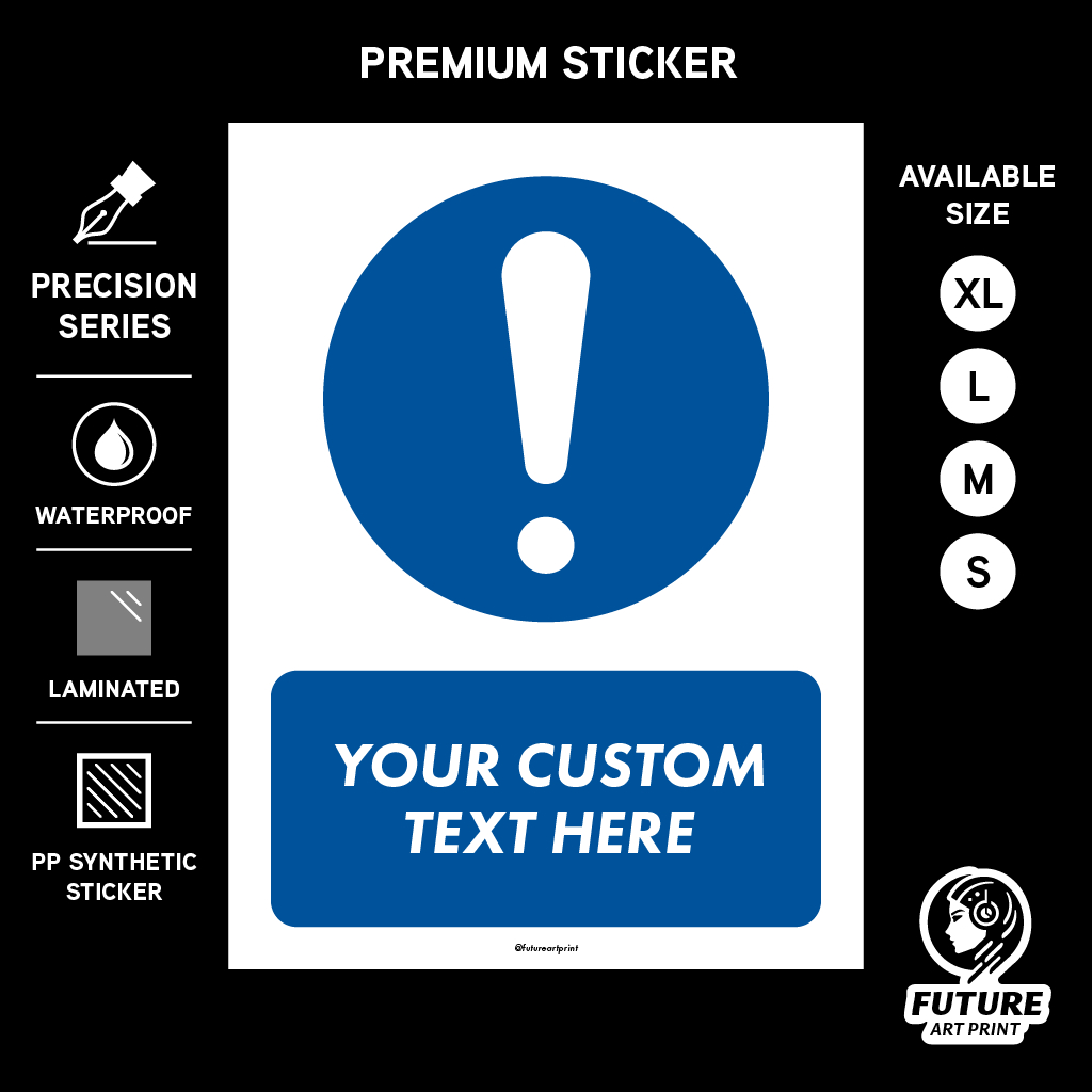 Custom Mandatory Sign. Wajib Tanda Seru Petanda Notis. Sticker Safety Compliance Sign Signage Notice. Exclamation Mark.