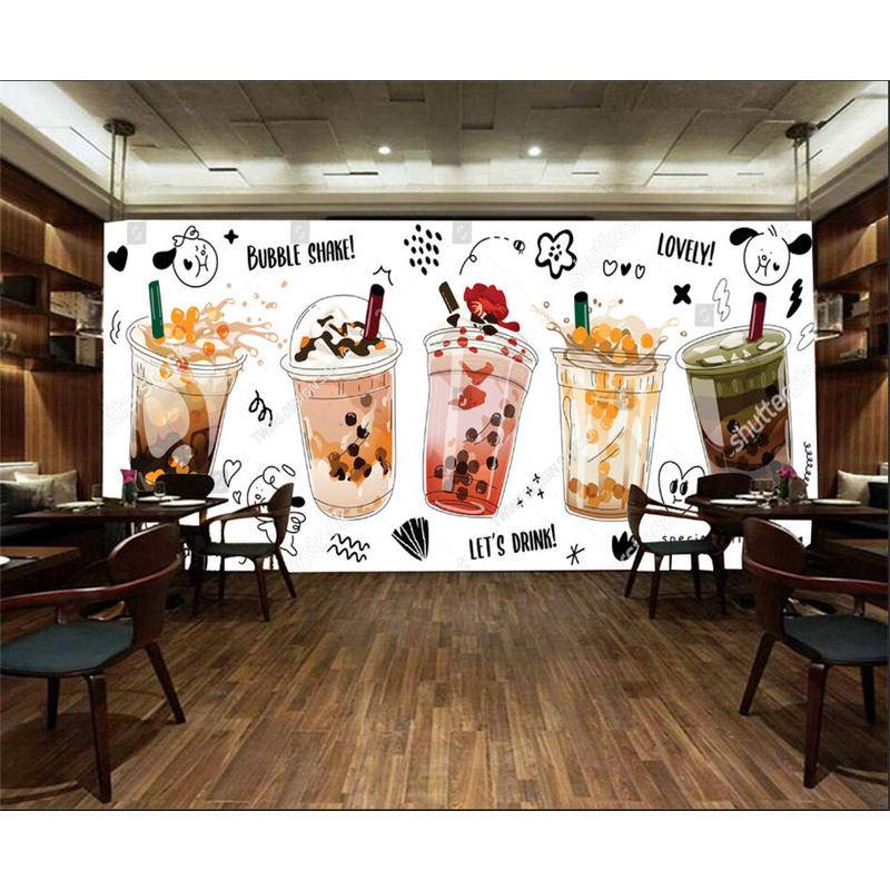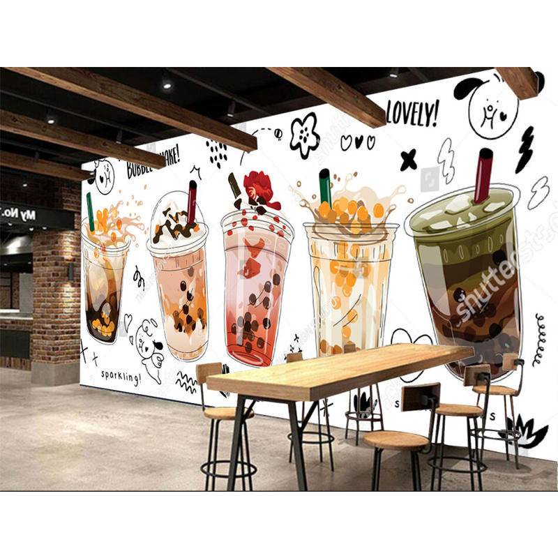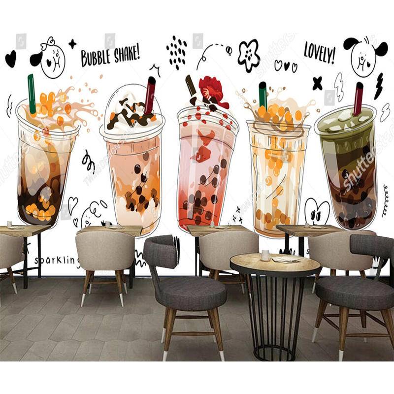 Custom Modern Milk Tea Shop Wall Papers Industrial Decor Afternoon Tea Background Murals Self Adhesive Wallpaper Papel De Parede