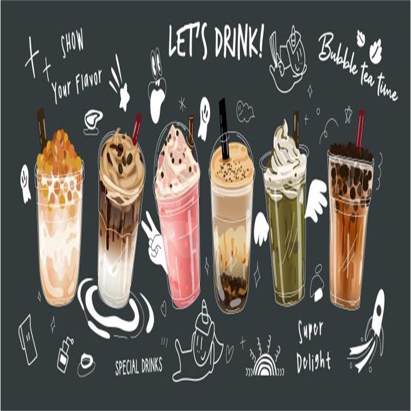Custom Modern Pearl Milk Tea Shop Wall papers Industrial Decor Afternoon Tea Black Background Murals Self Adhesive Wallpaper