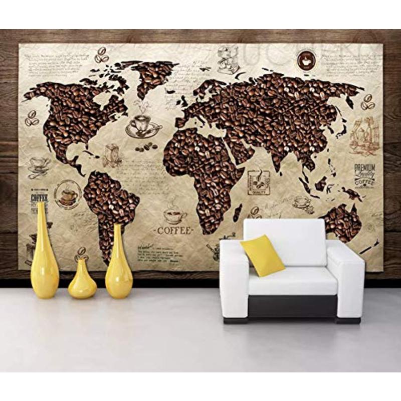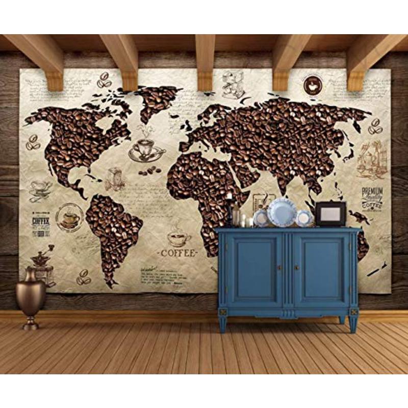 Custom Murwall Map Wallpaper 3D Coffee Map Wall Murals Coffee Bean Wall Art World Map Wall Art Modern Cafe Design Living Room Entryway coffee shop home decor