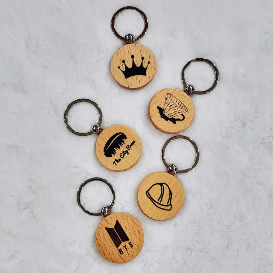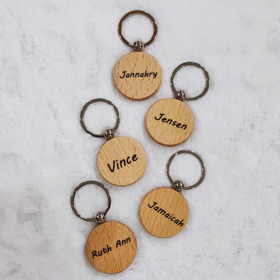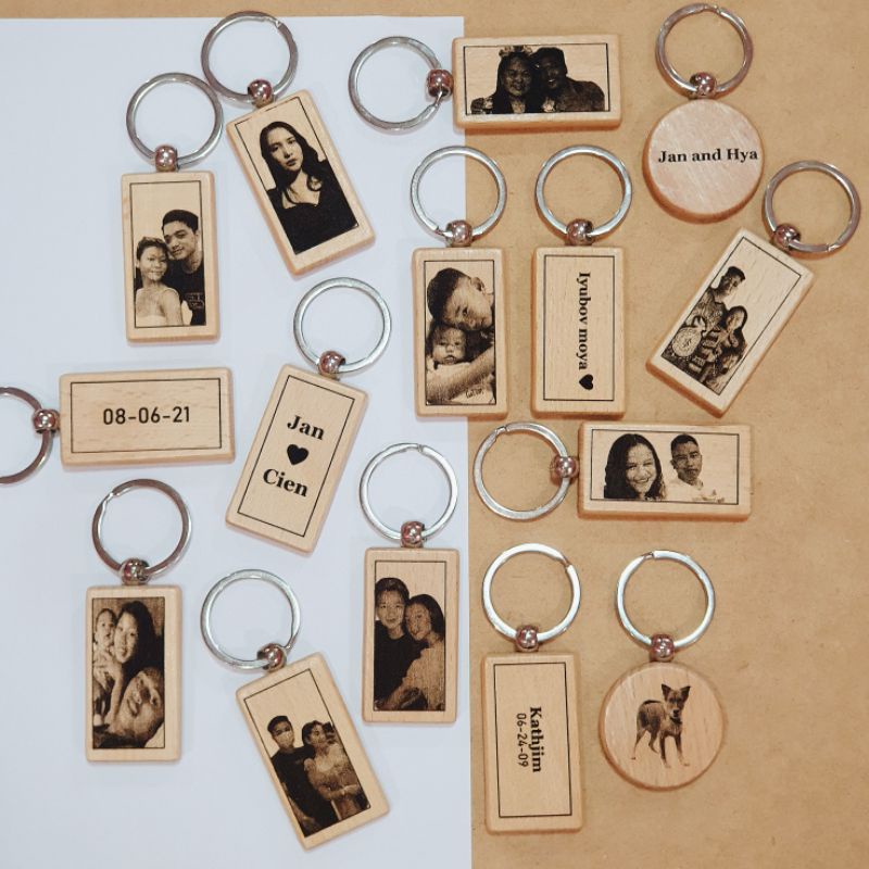 Custom/Personalized Laser Engraved Print Keychain on Wood with Picture and Text