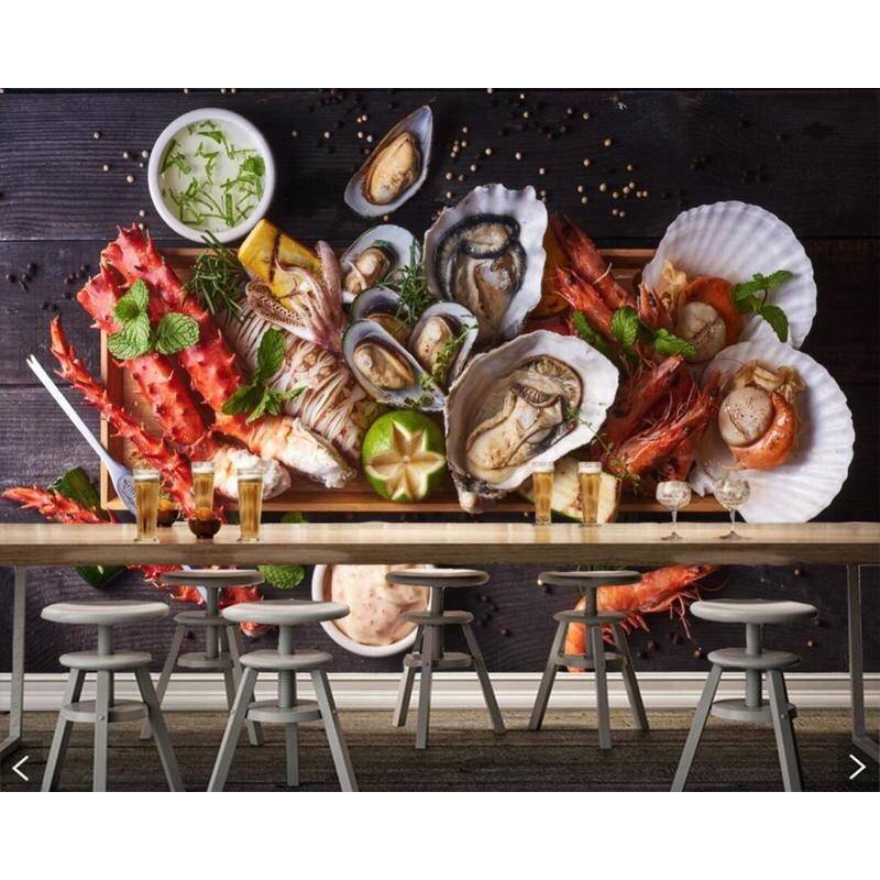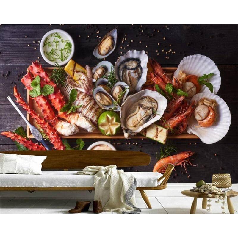 Custom Seafoods Shellfish Food 3d Shrimp Murals For Living Room Kitchen Wall Papers Home Restaurant Bar Decor sticker