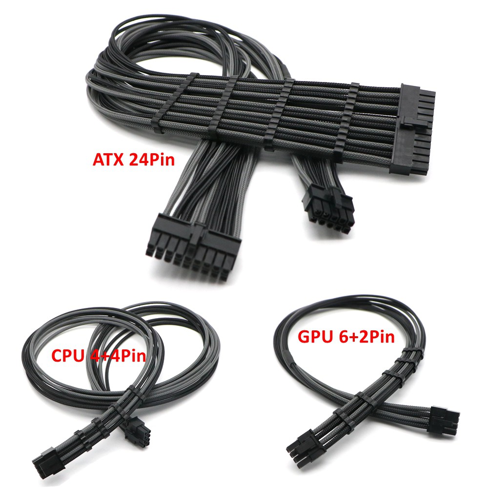 Custom Sleeved Modular Power Supply Cable Kit ATX 24Pin GPU 6+2Pin CPU 4+4Pin Cable for SeaSonic.