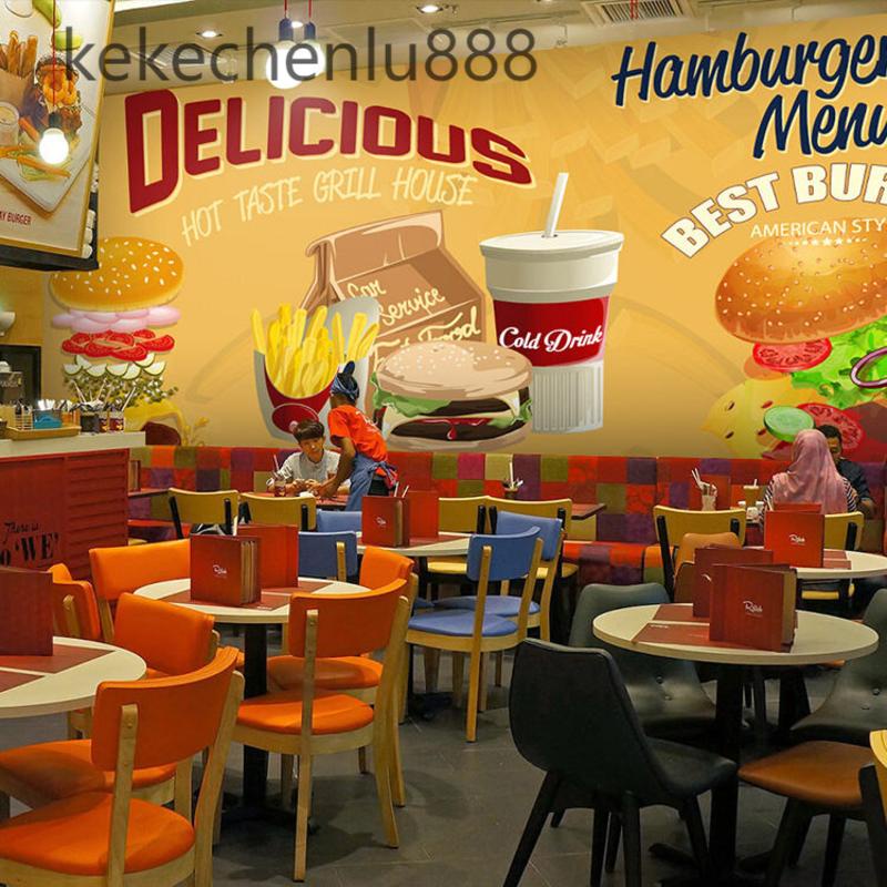 Custom mural restaurant bar restaurant large hamburger fast food theme snack background wallpaper wall american wallpaper